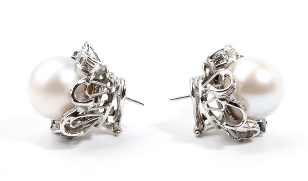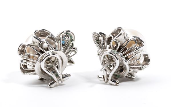 Orecchini in oro con perle Australiane, diamanti e zaffiri