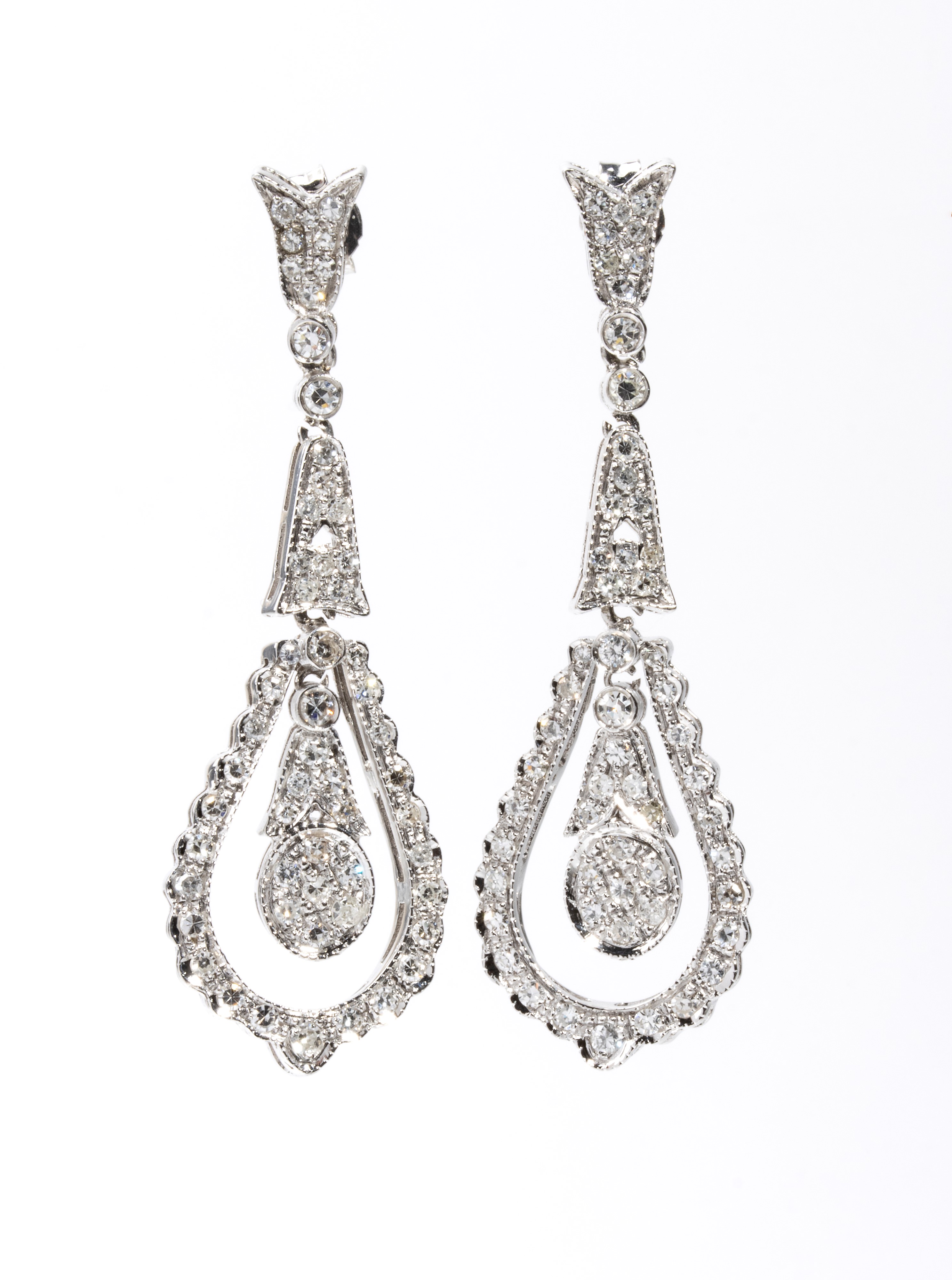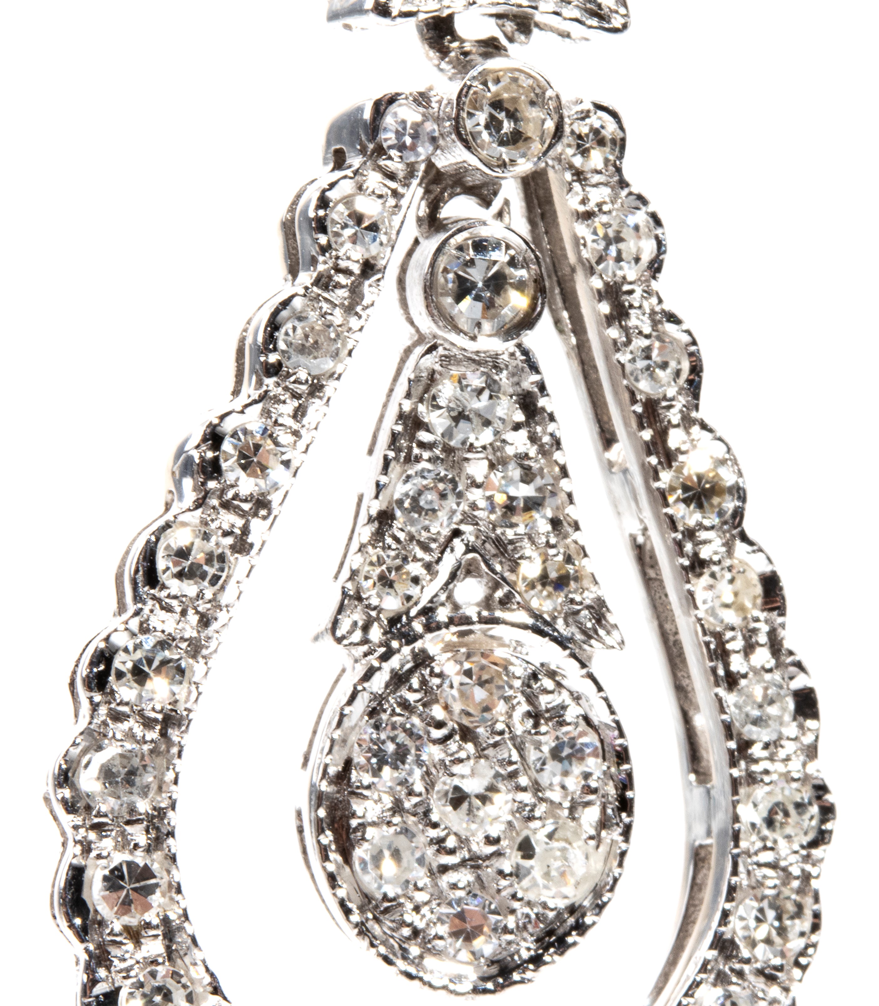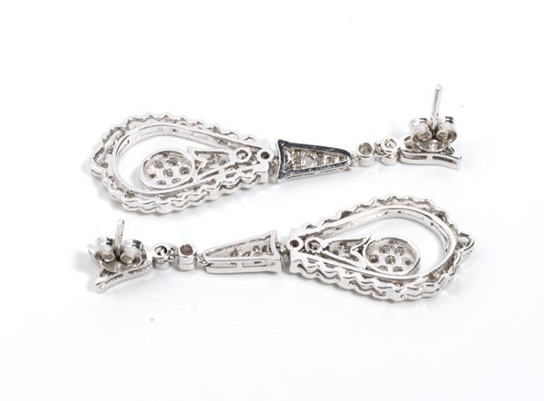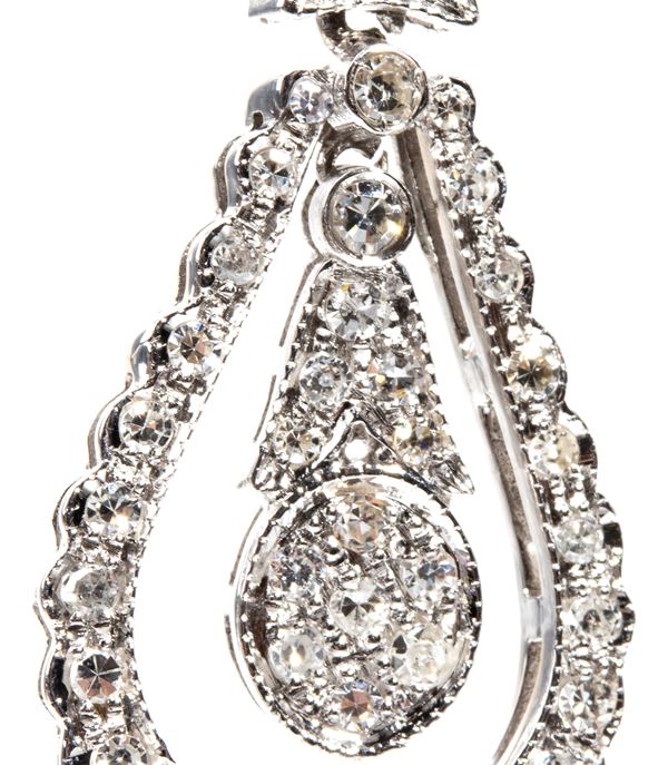 in oro bianco 18k, a forma a goccia pendente, impreziositi da 110 diamanti di forma rotonda, taglio huit-huit, circa 1.00 ct.