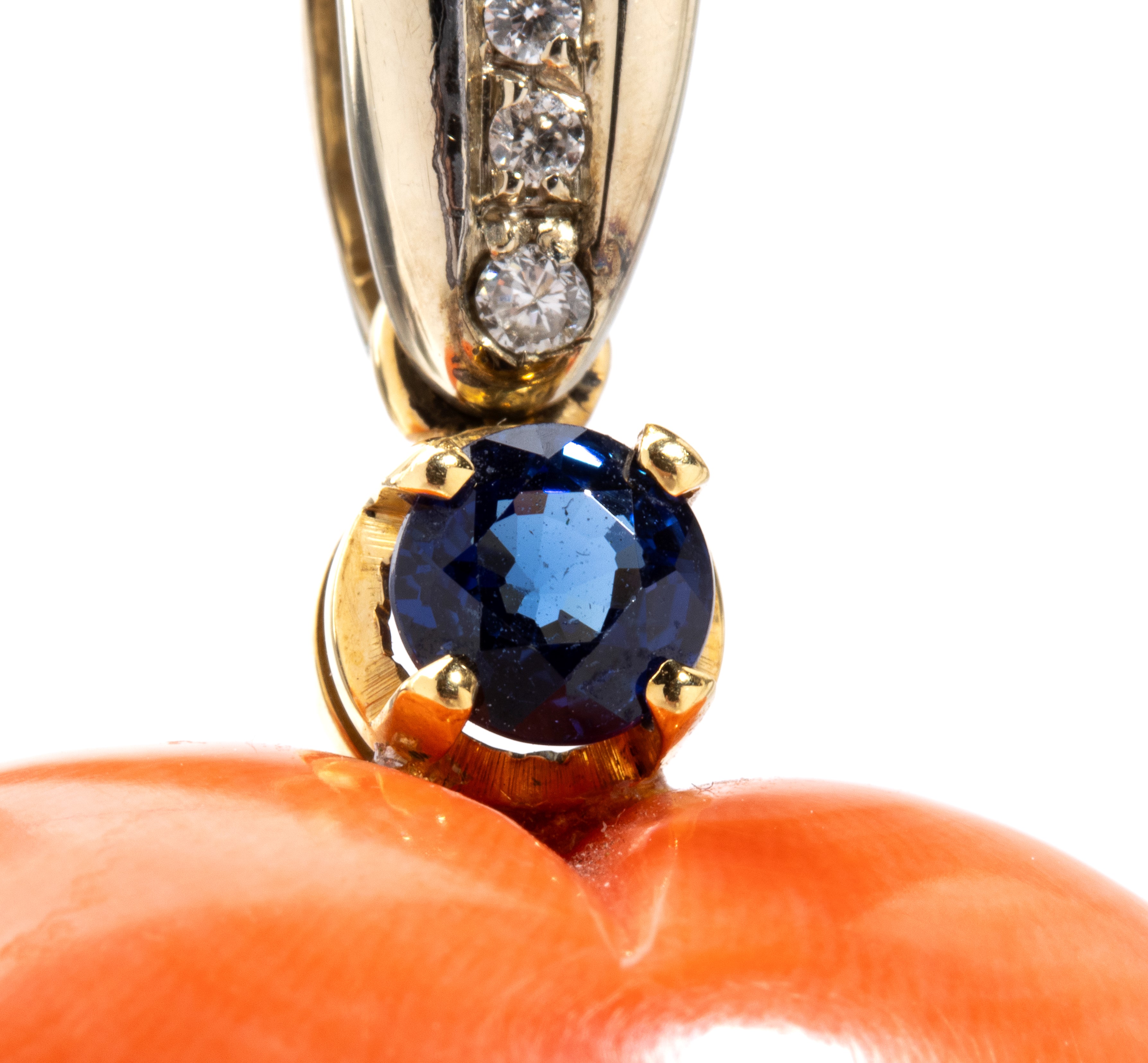 Pendente in corallo Cerasuolo con zaffiro e diamanti