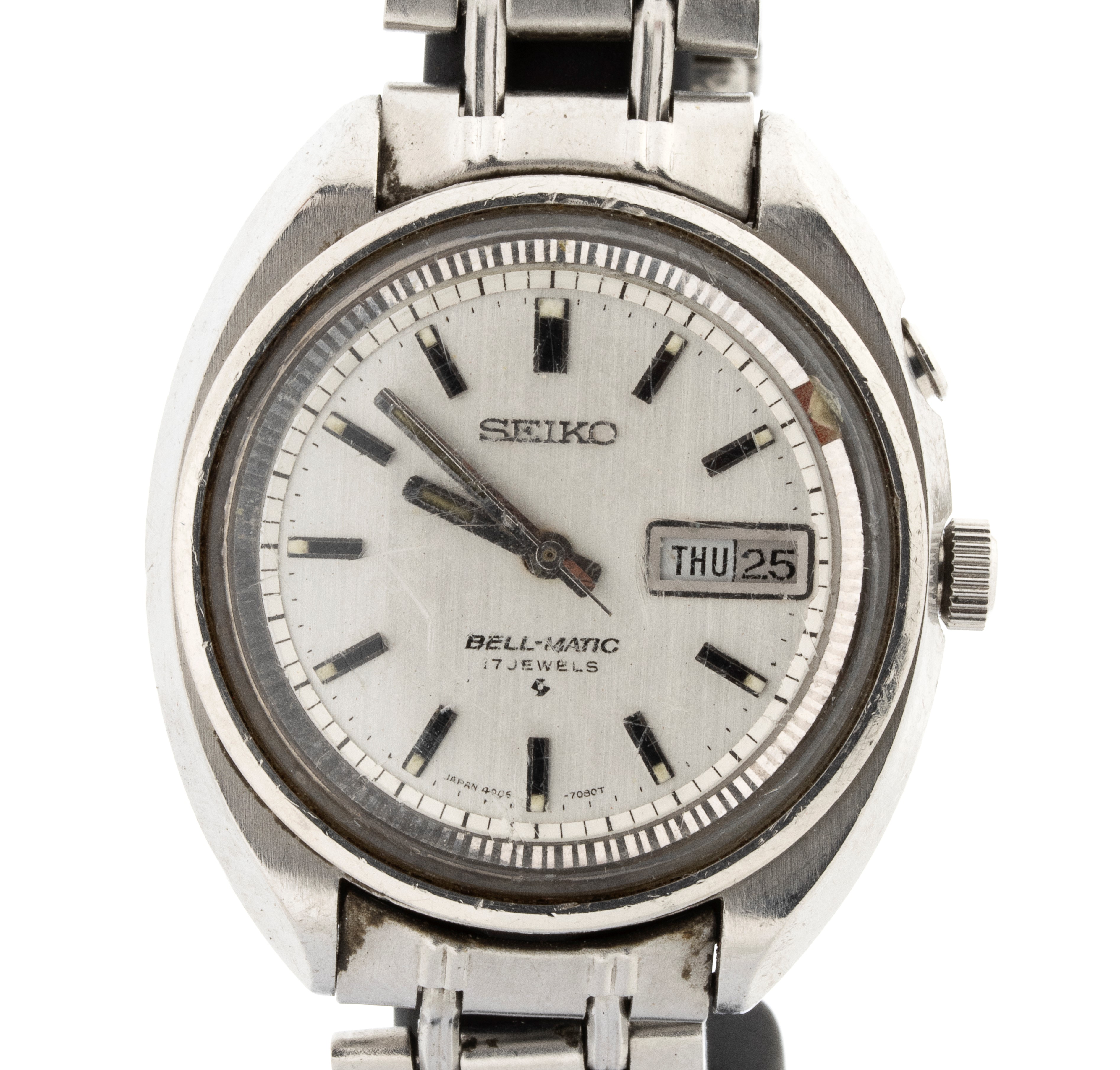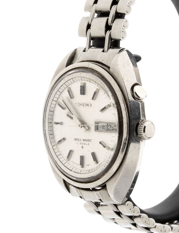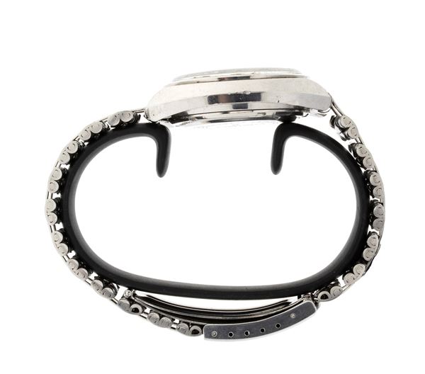 con cassa e bracciale in acciaio, sveglia, calendario e datario. Movimento meccanico a carica automatica.