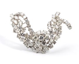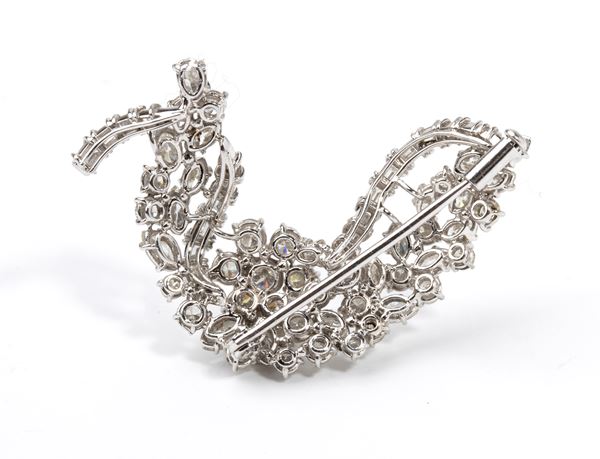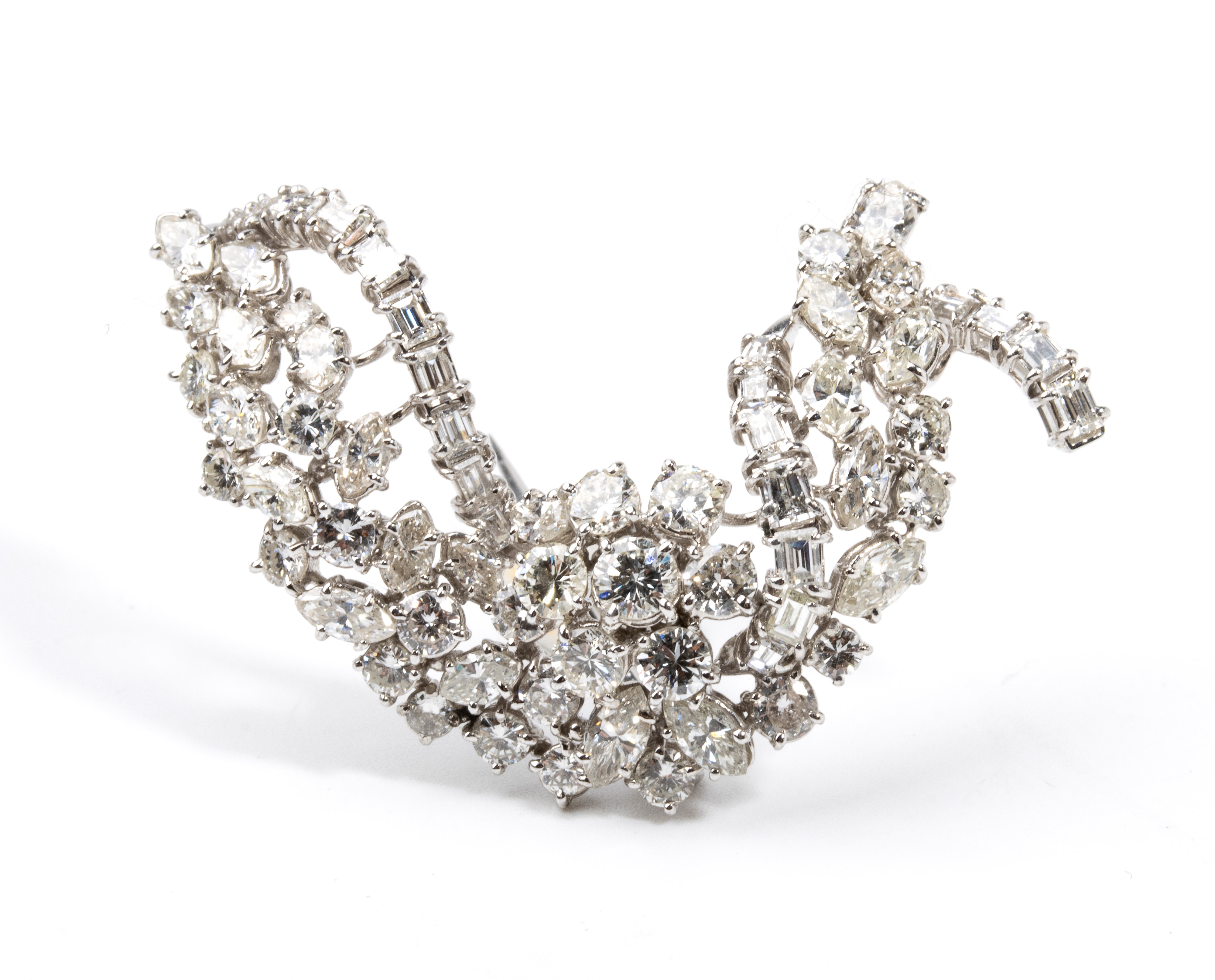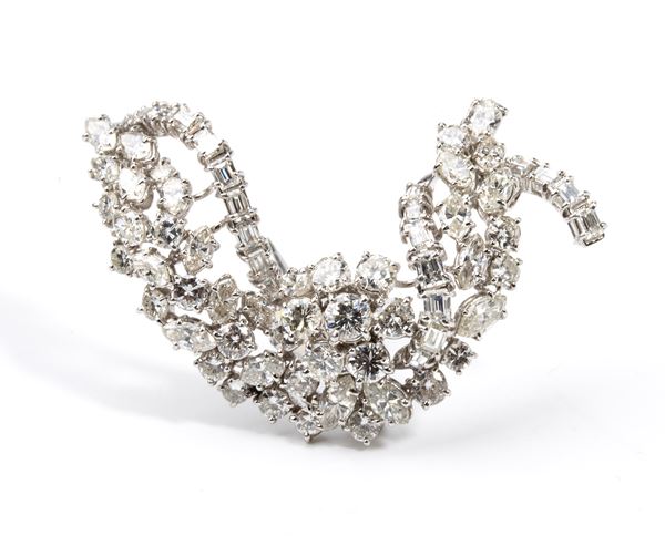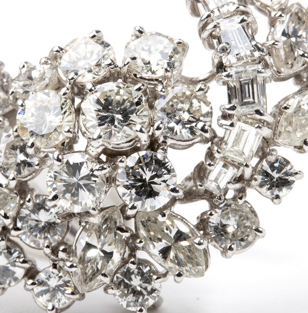 in oro bianco, incastonata con diamanti di forma rotonda, taglio brillante, di forma a navetta e forma rettangolare, stimati per un peso totale di circa 4.80 ct, colore G-H, purezza VVS-VS, come misurati e classificati nella montatura.