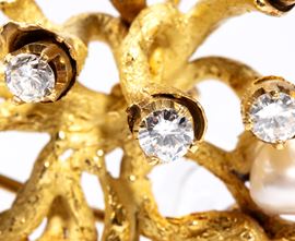 Spilla in oro con diamanti e perle di fiume, anni '70