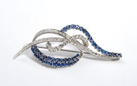 Spilla in oro con diamanti e zaffiri, anni '60 del XX secolo