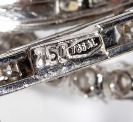 Punzonato "750 - 766 AL". Dimensioni: 6,5 x 2.8 x 2,2 cm. Peso: 13.4 gr.