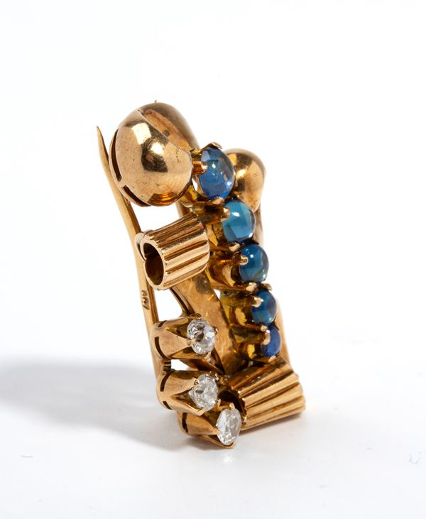 Spilla in oro con diamanti e zaffiri, anni '30