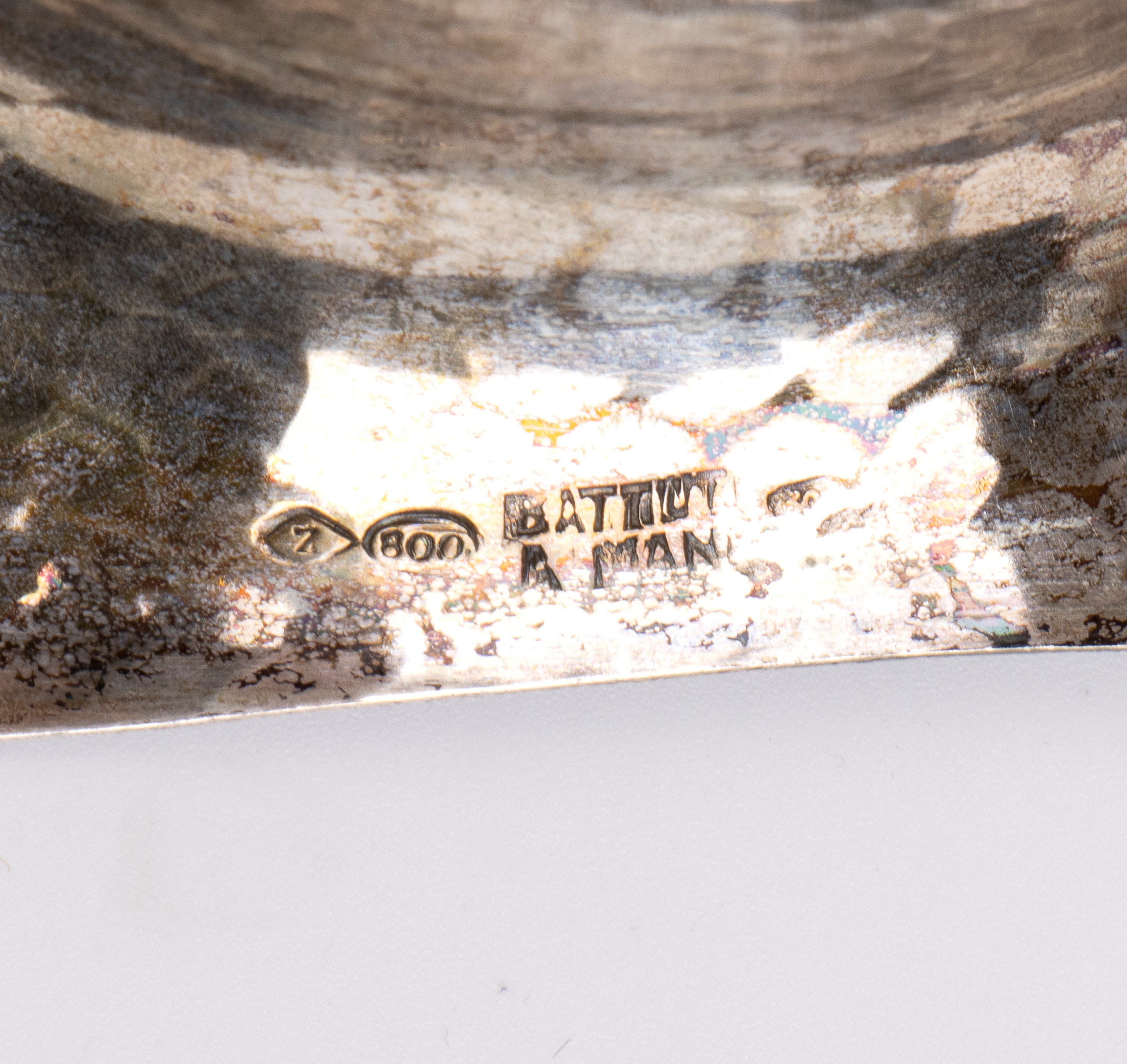 Argento 800/1000, punzonato "800", "BATTUTO A MANO", argentiere Zaramella.