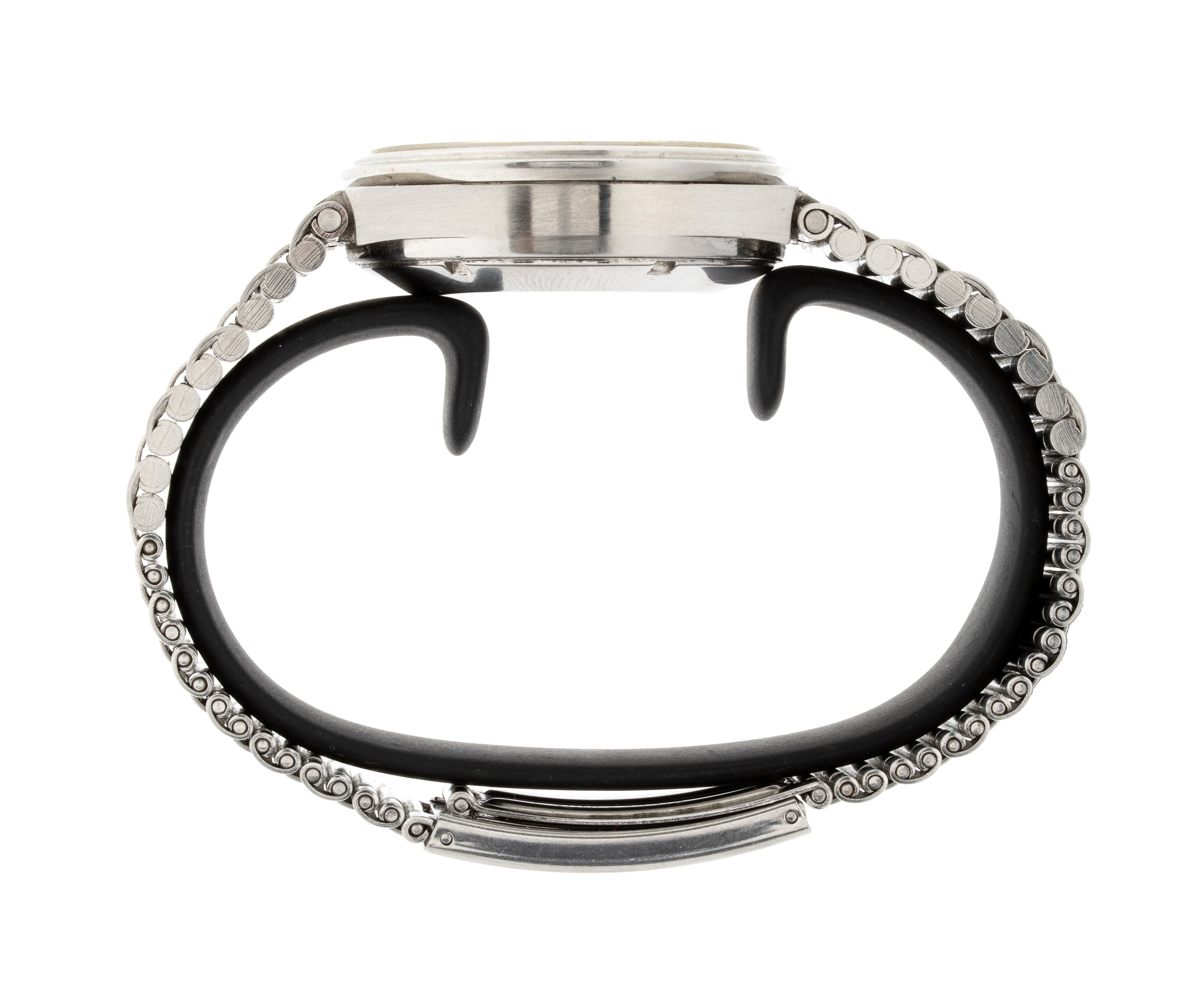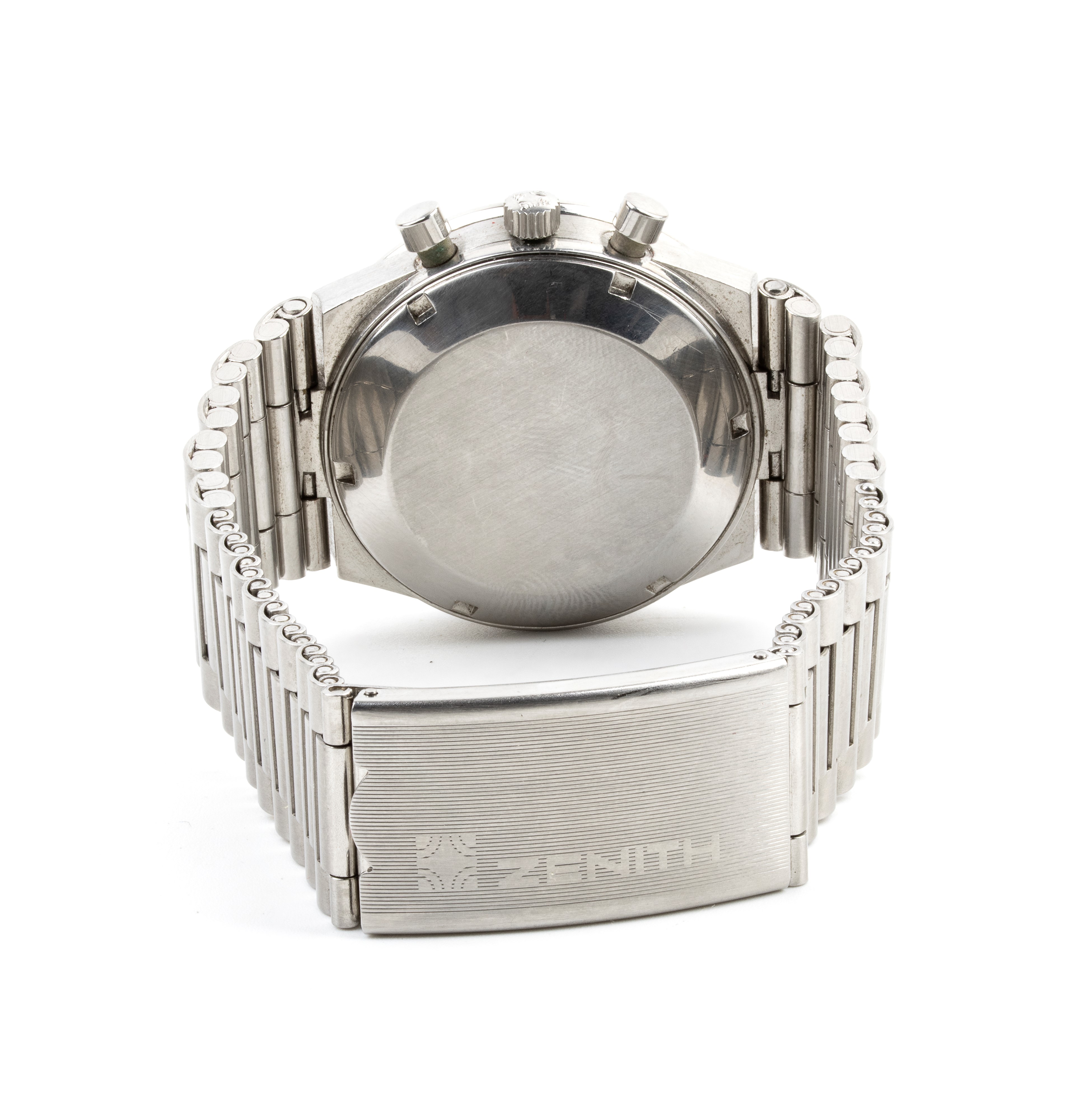 con cassa e bracciale in acciaio e bracciale con fibbia a molla elastica. Movimento calibro 3019 PHC.