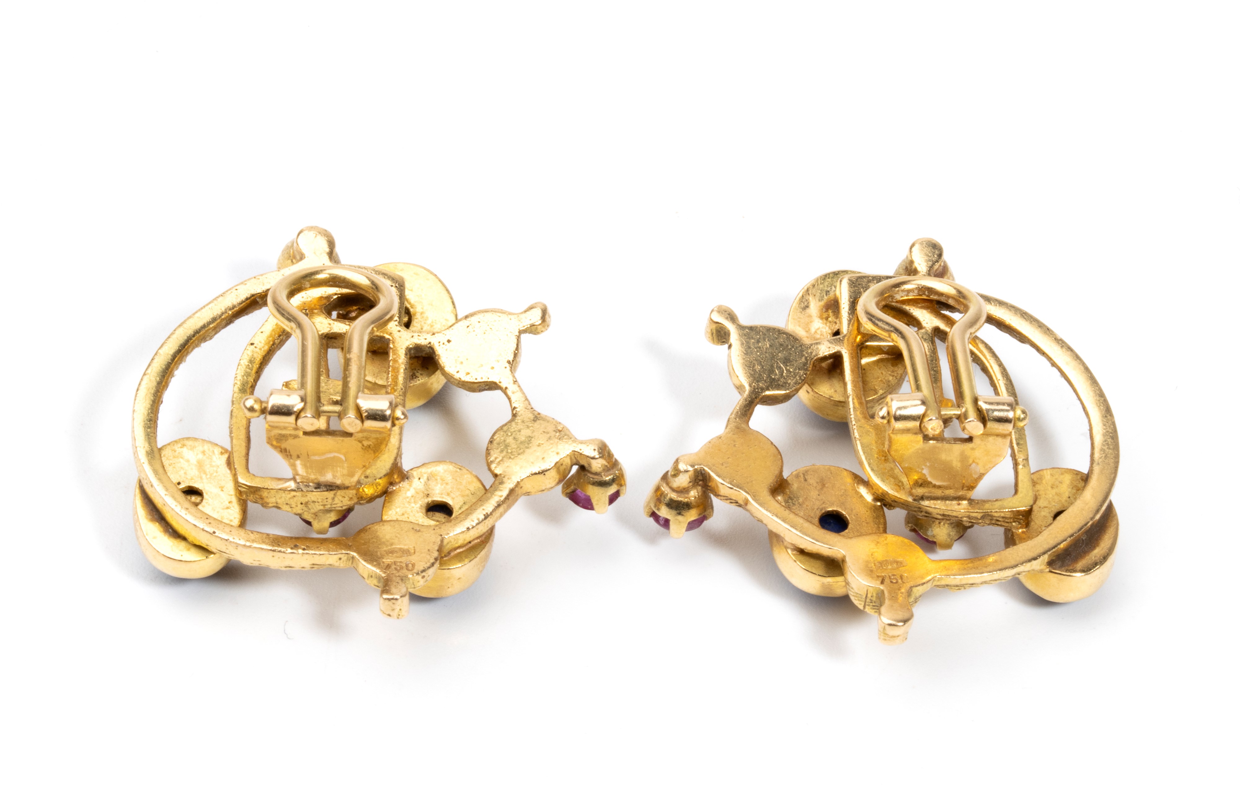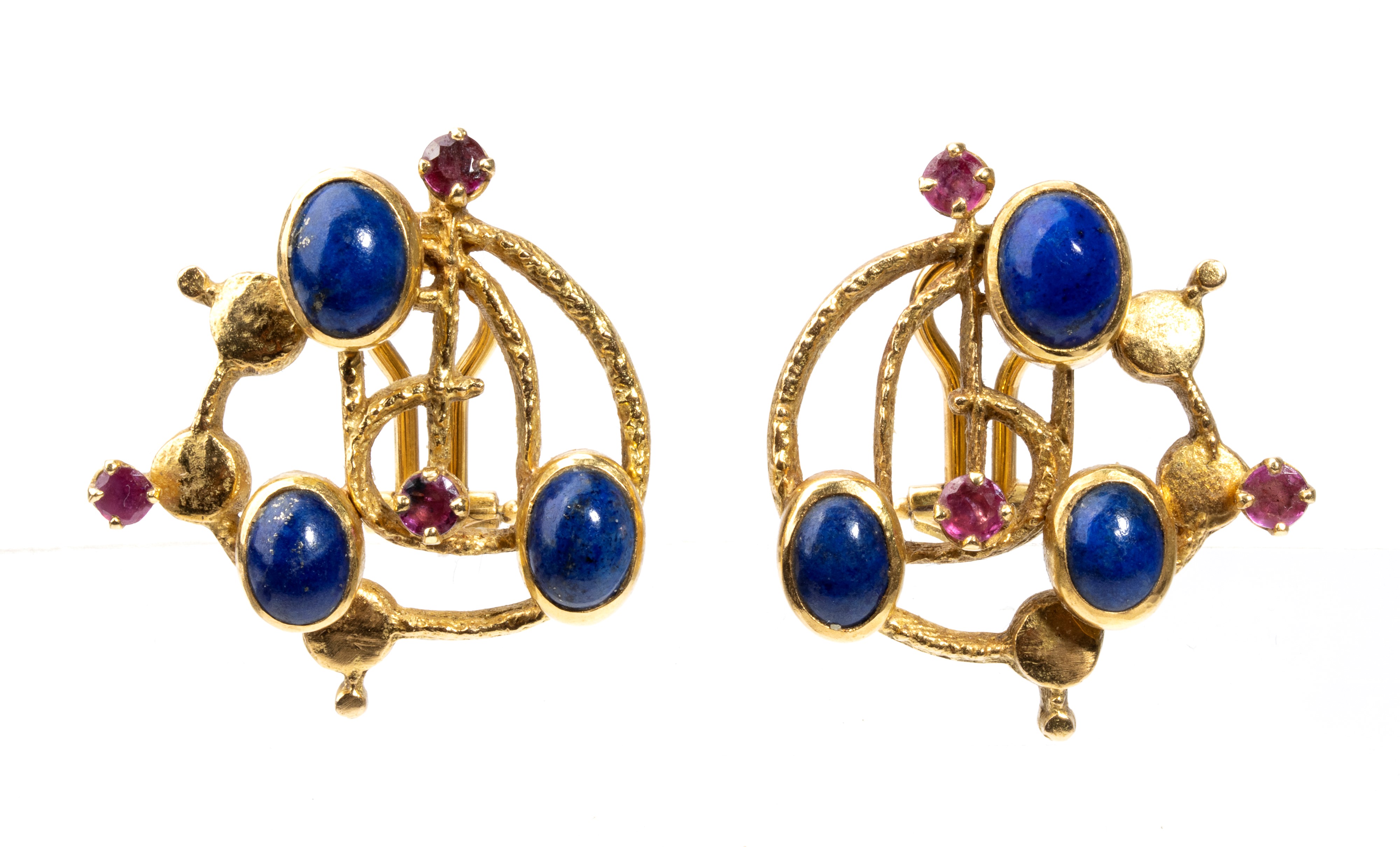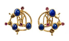 Orecchini in oro con lapislazzuli e rubini, anni '70 del XX secolo