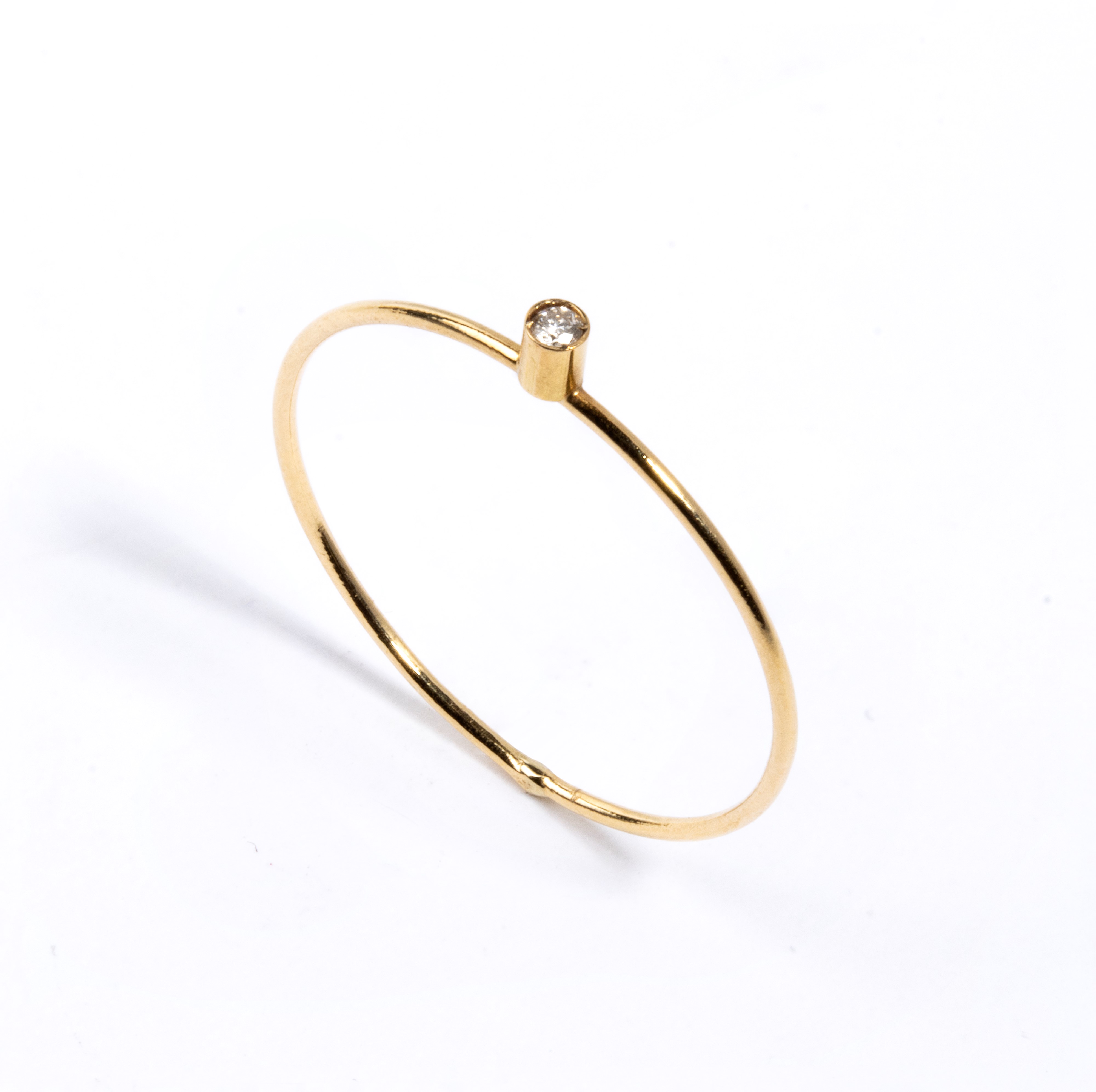 in oro giallo 18k, incastonato con un diamante di forma rotonda, taglio brillante, per un peso totale di circa 0.01 ct.