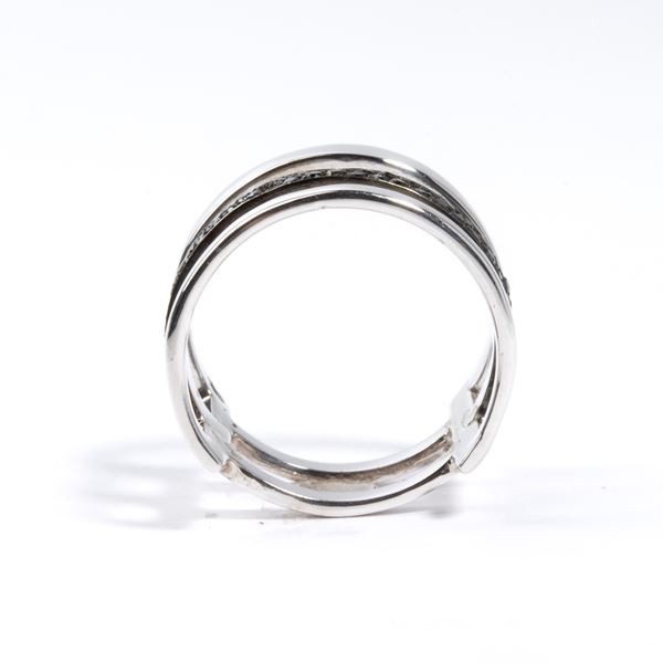 in oro bianco 18k con applicazione di rutenio, modellato come una fascia composta da tre sottili nastri in diamanti neri, stimati per un peso totale di circa 0.50 ct.