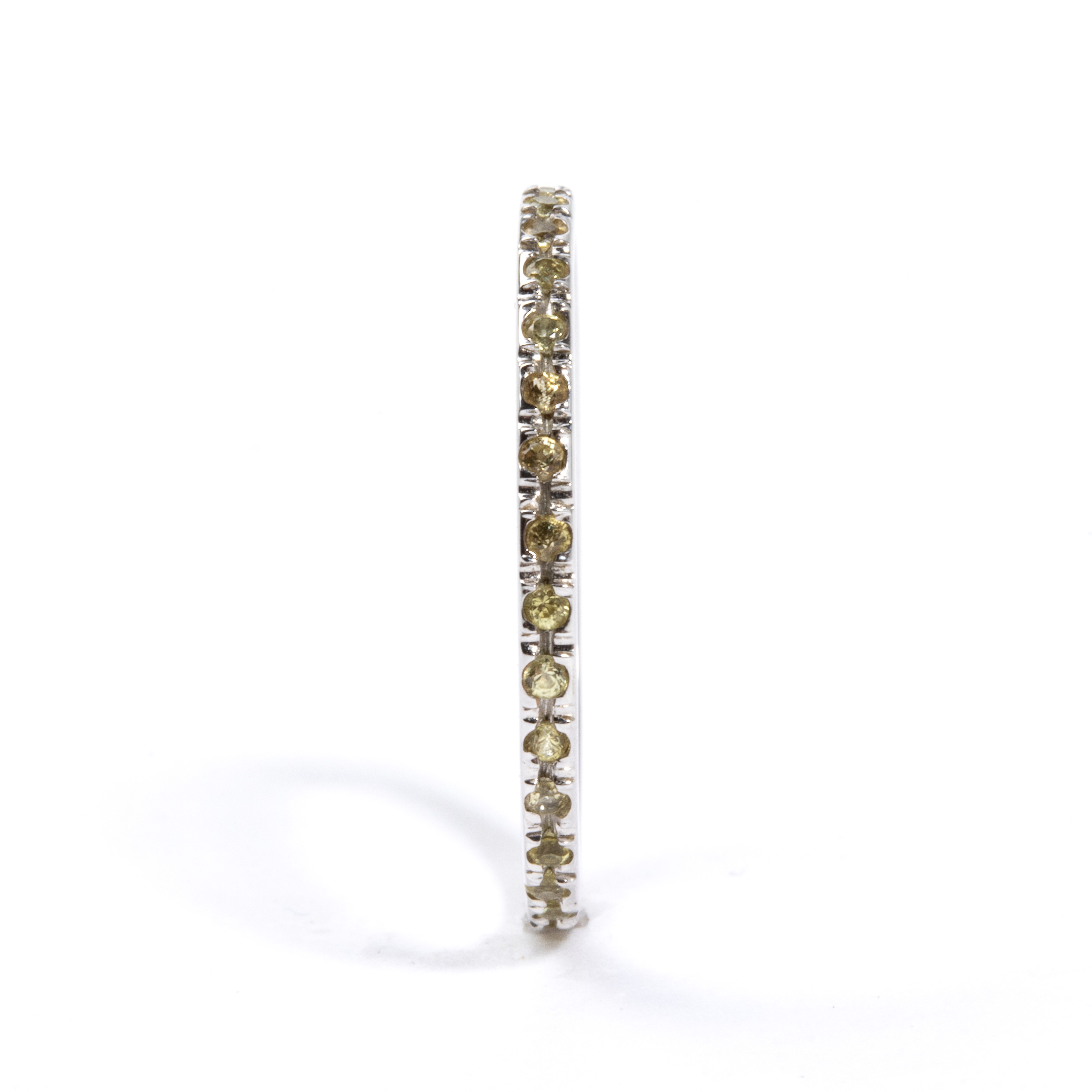 in oro bianco, incastonato con linea di corindoni gialli.