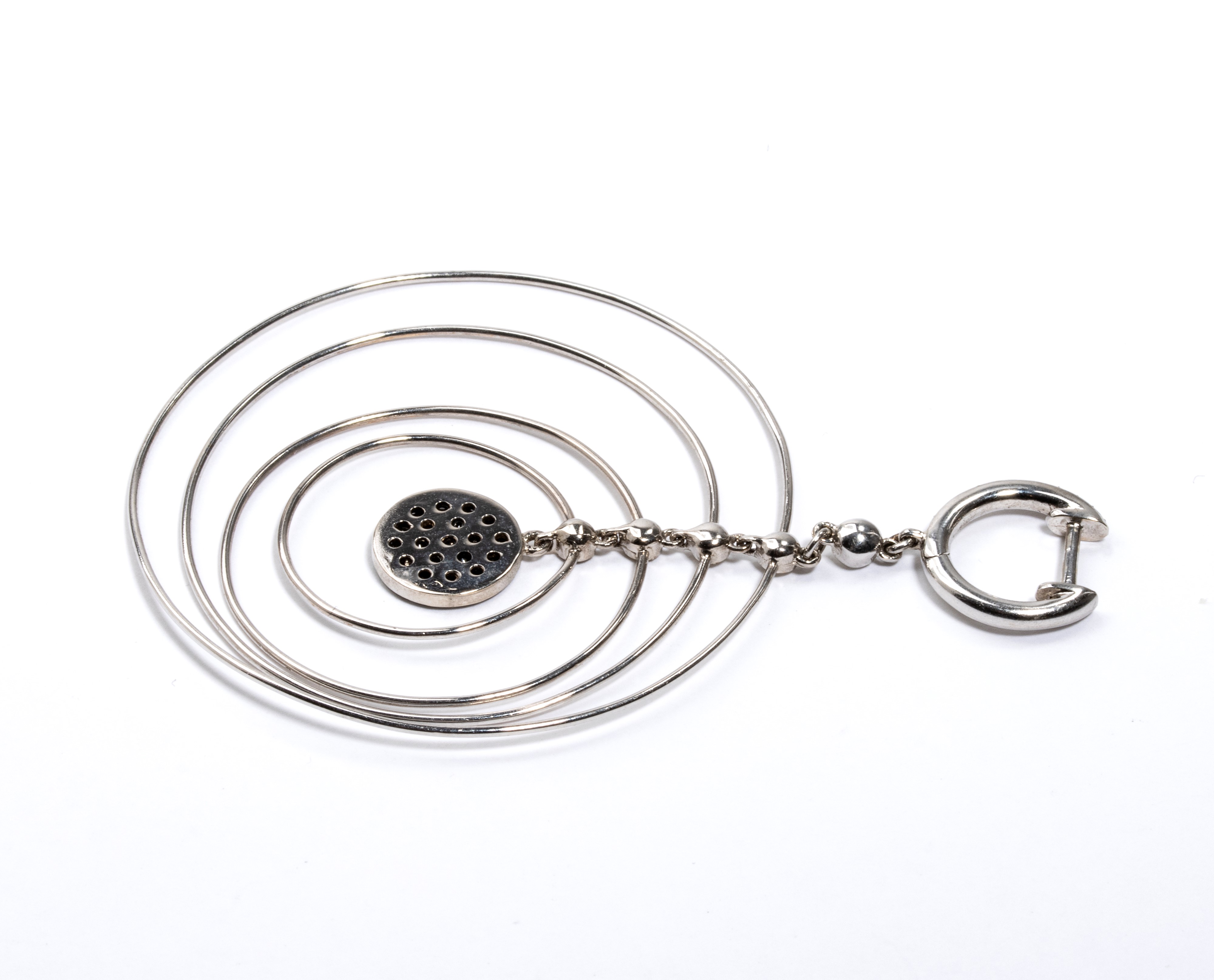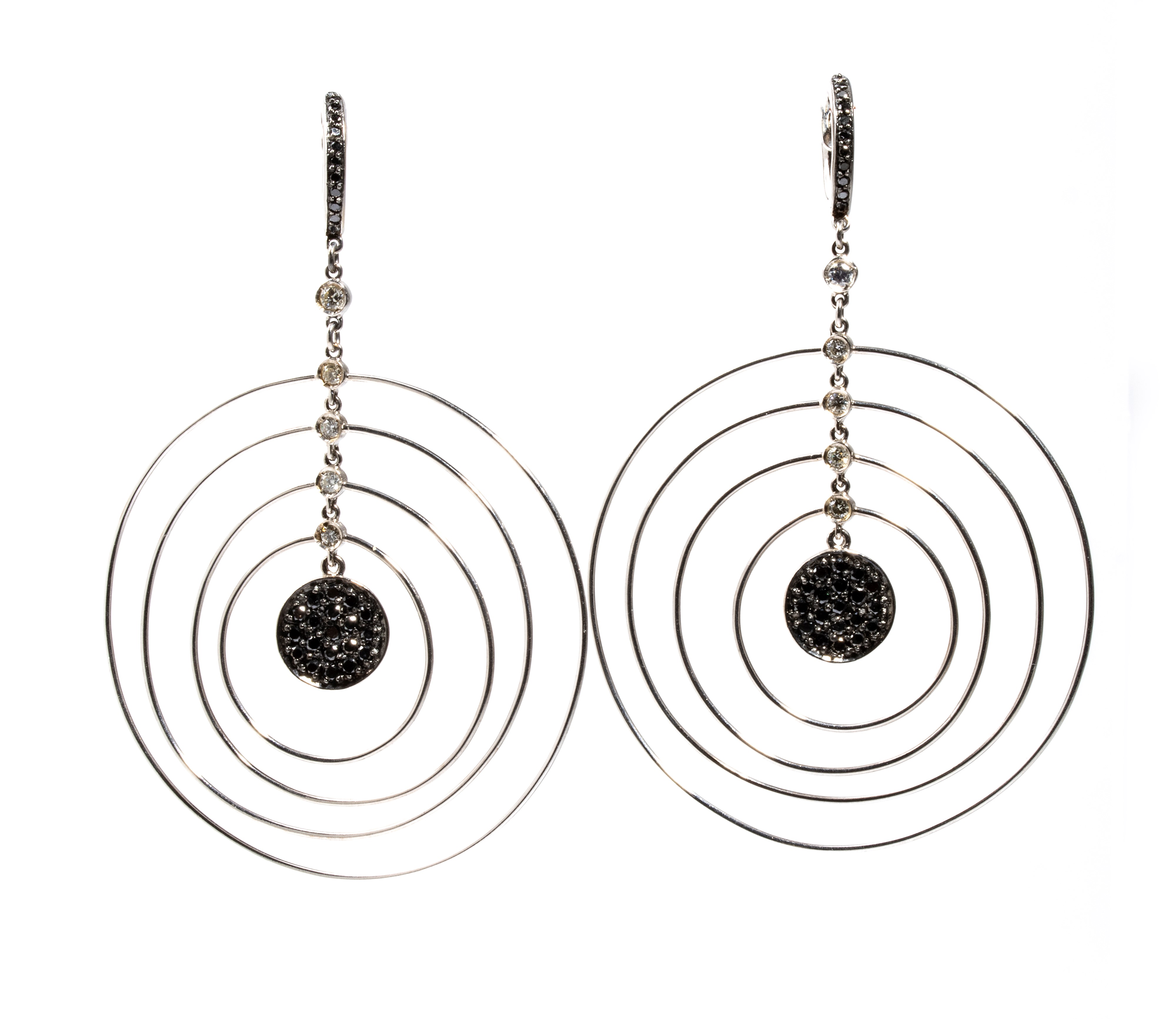 in oro bianco, con motivo di cerchi concentrici, linea di diamanti incolori di forma rotonda, taglio brillante, stimati per un peso totale di circa 0.23 ct, colore H, purezza VVS-VS e pavè di diamanti neri per un peso di circa 0.61 ct.