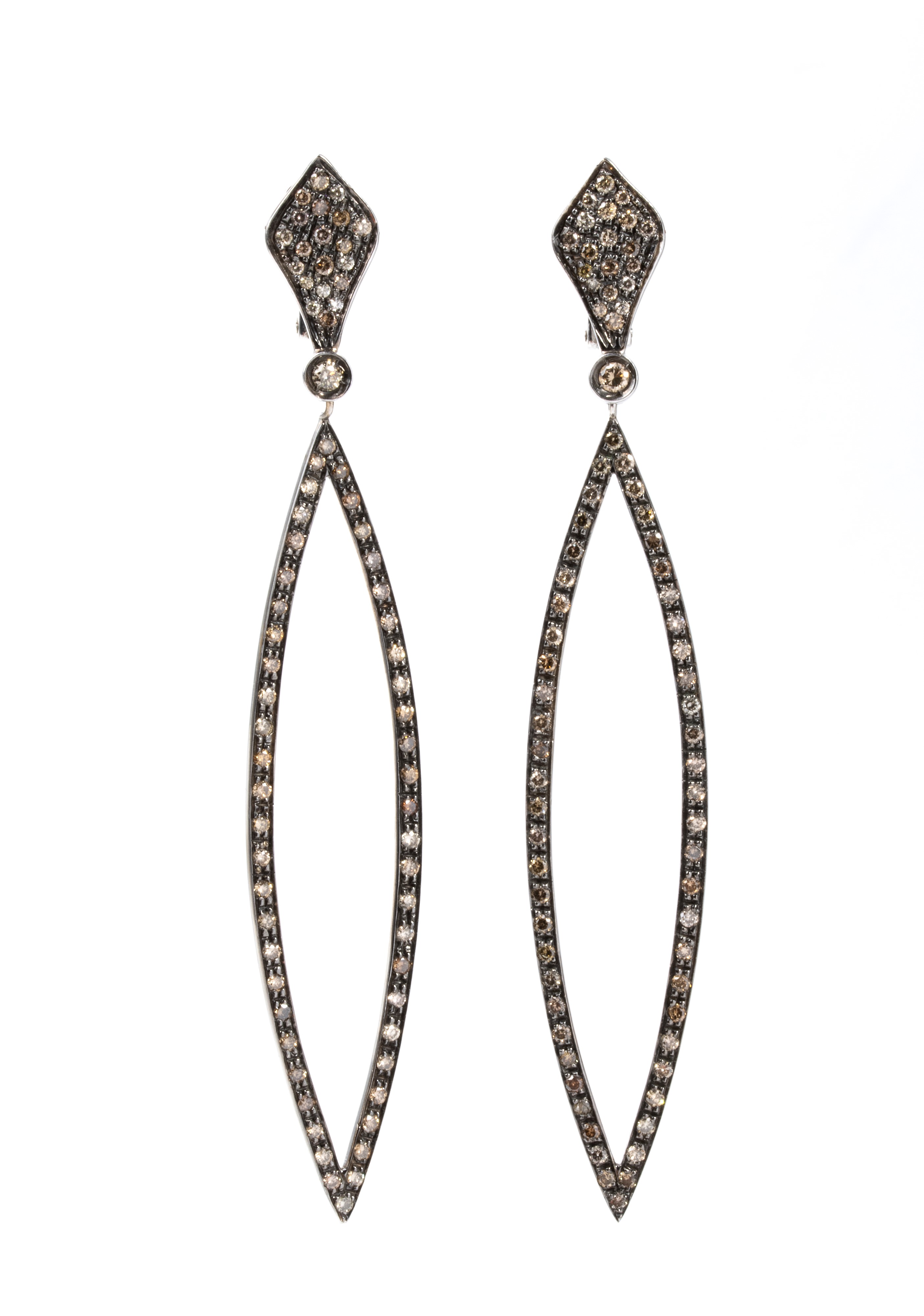 in oro bianco, incastonati con diamanti di colore fantasia marrone, forma rotonda, taglio brillante, stimati per un peso totale di circa 2.54 ct, come misurati e classificati nella montatura.