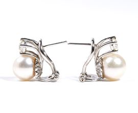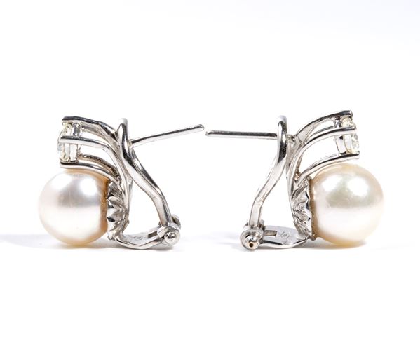 in oro bianco 18k, ciascuno con perla coltivata d'acqua salata sormontata da diamante.
