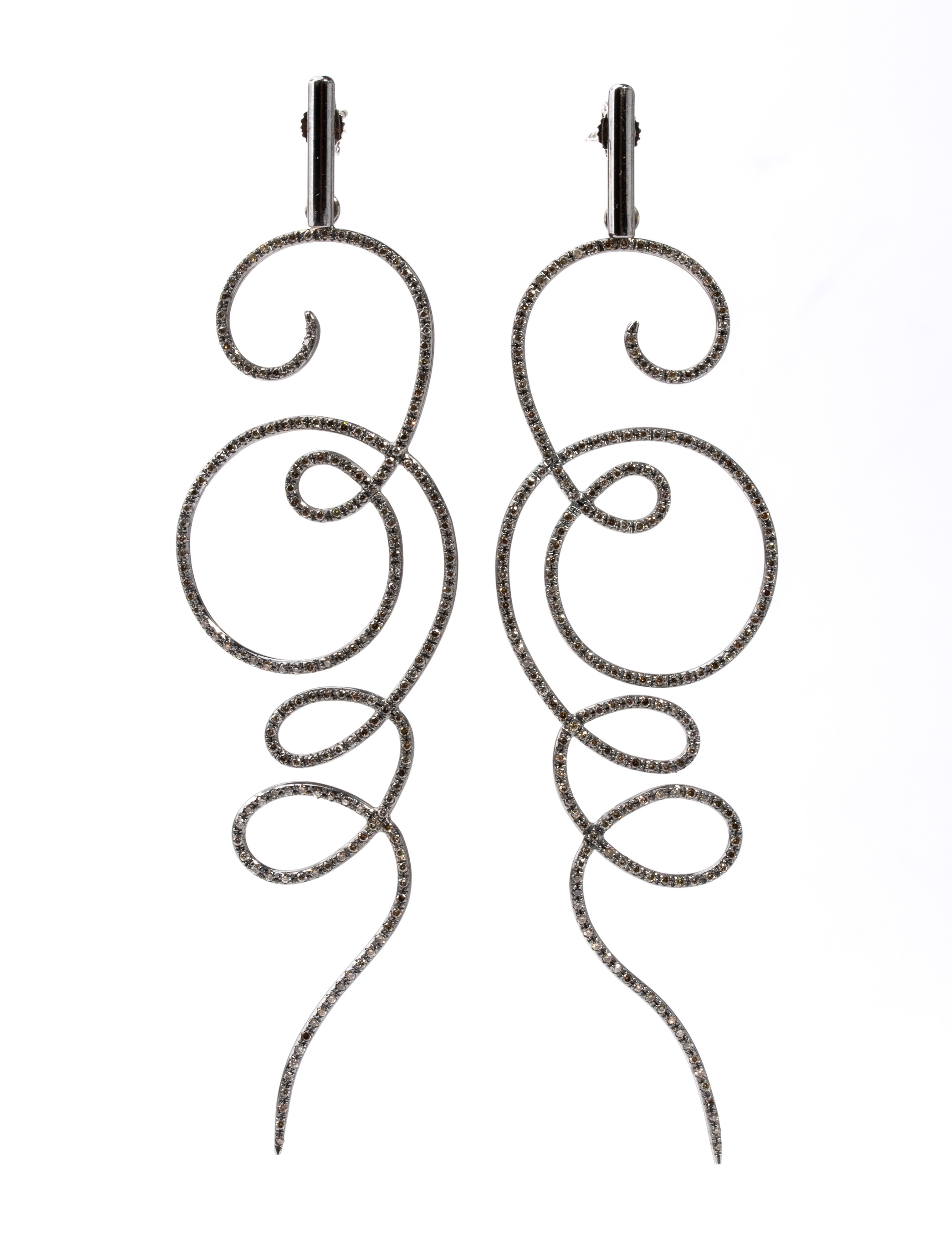 in oro bianco 18k, incastonato con diamanti di forma rotonda, taglio brillante, colore fantasia marrone.