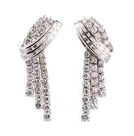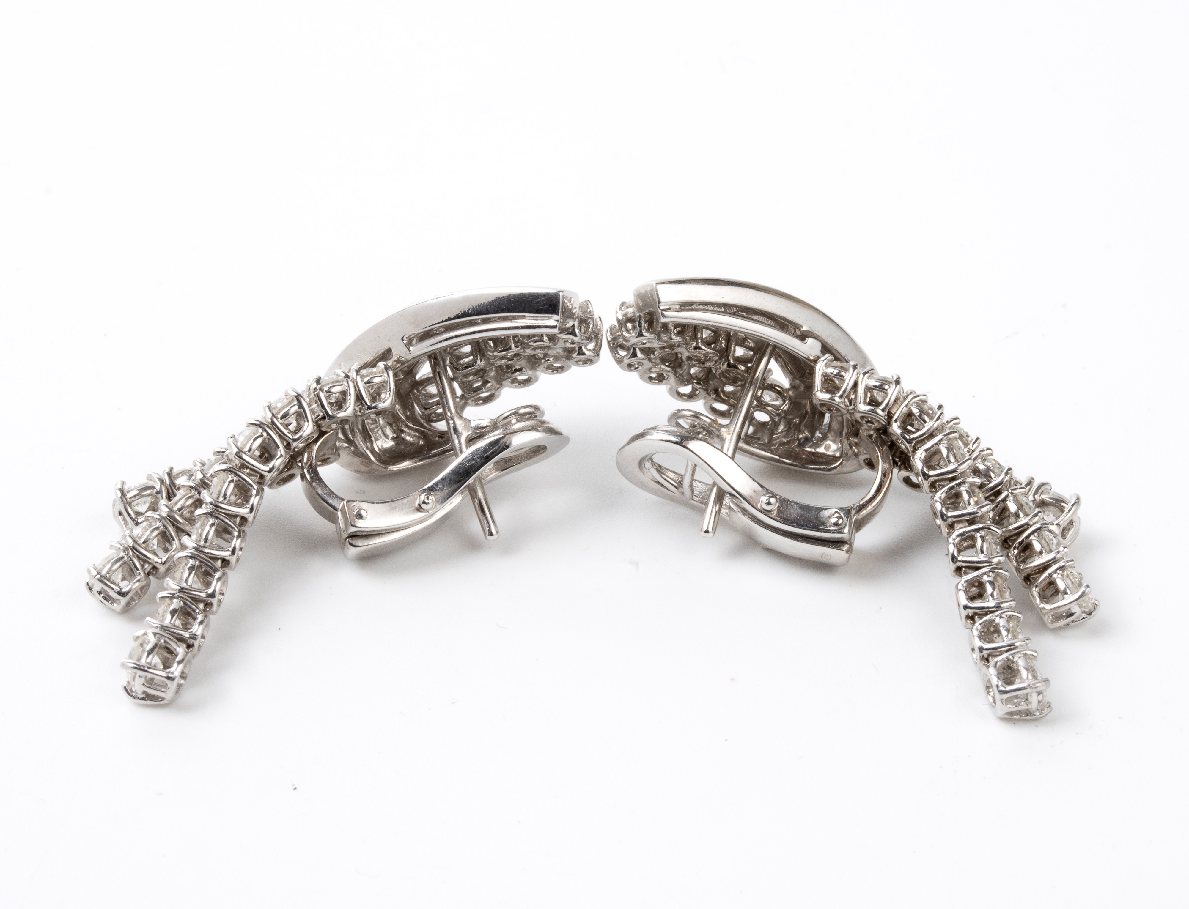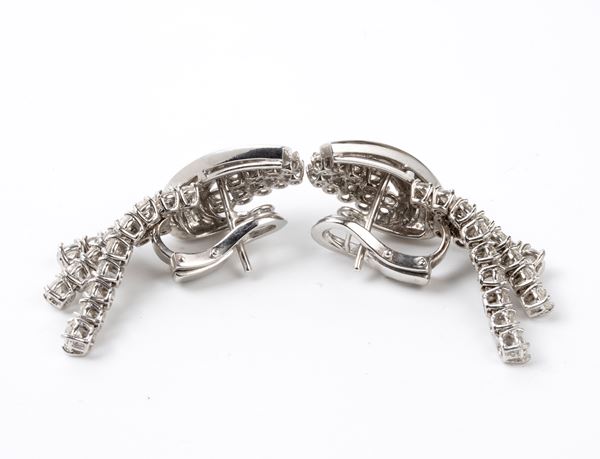 in oro bianco, con motivo di nastri e frangia in diamanti di forma rotonda, taglio brillante, stimati per un peso totale di circa 6.58 ct, colore F-G, purezza VS-SI, come misurati con montatura.
