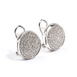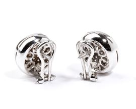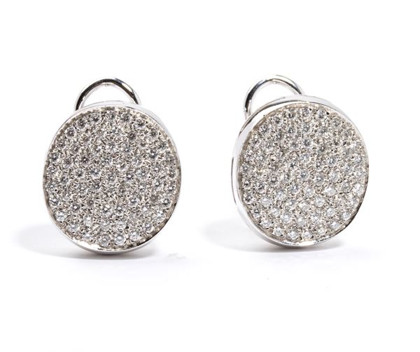 di forma ovale, in oro bianco 18k, incastonati con pavé di diamanti di forma rotonda, taglio brillante, stimati per un peso totale di circa 1.50 ct, colore F-G, purezza VVS-VS come misurati con montatura.