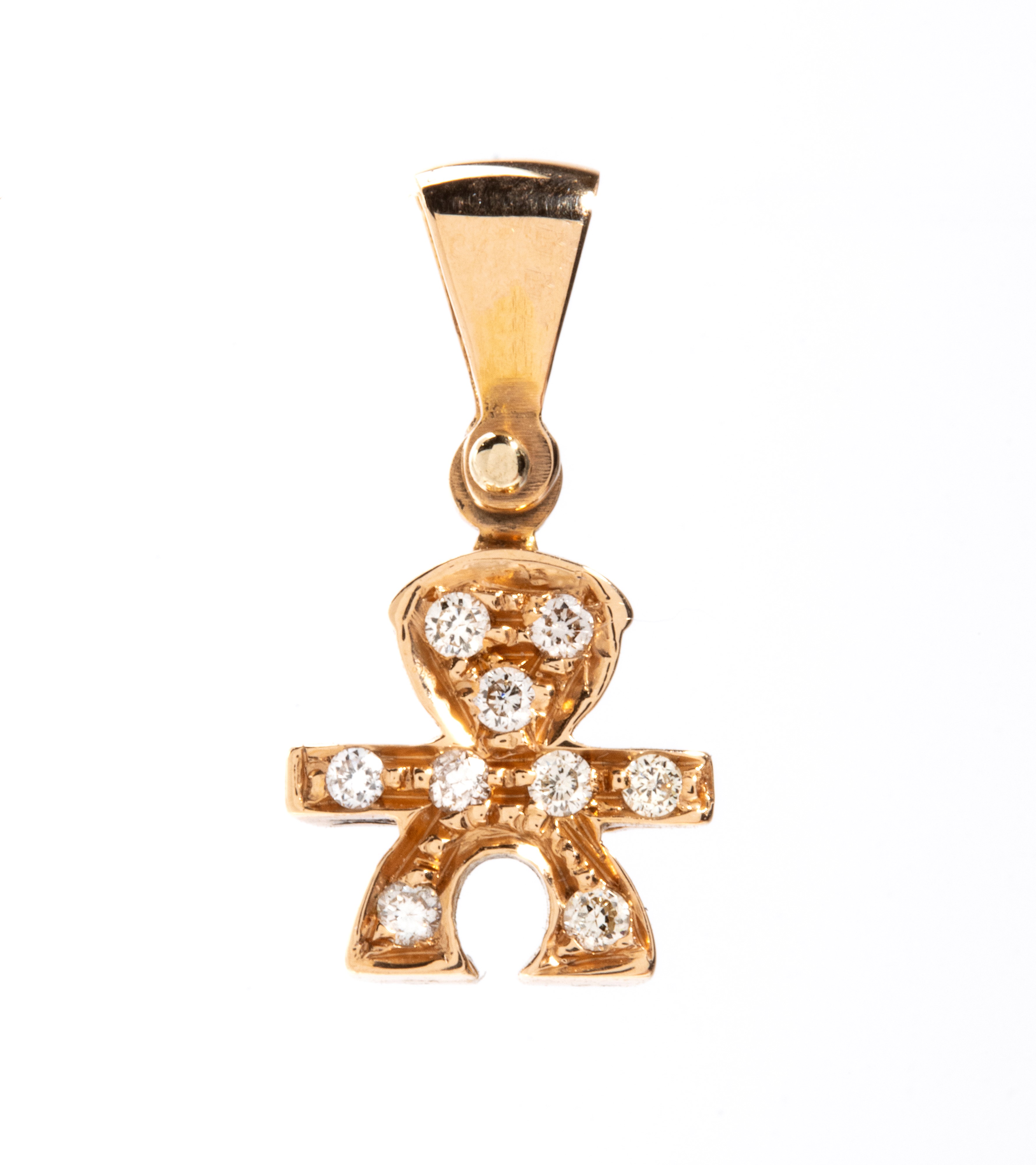 in oro osa, raffigurante la sagoma stilizzata di un bambino, impreziosito da pavé di diamanti rotondi, taglio brillante, stimati per un peso totale di circa 0.08 ct, colore I-J, purezza VS-SI, come misurati e classificati nella montatura.