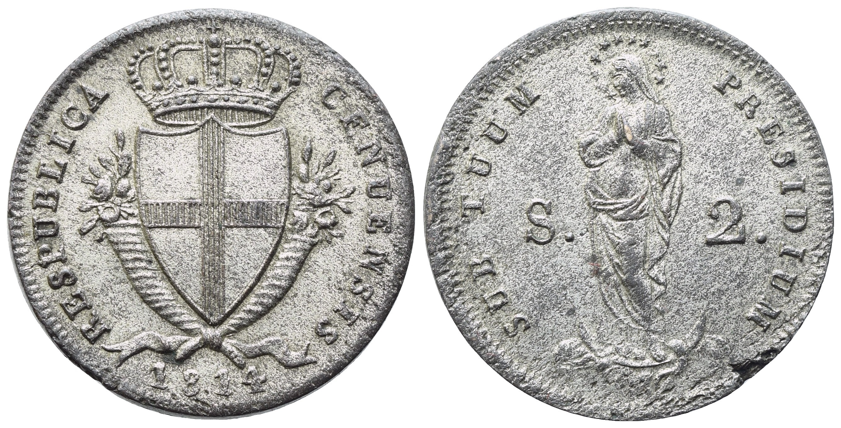 GENOVA. Repubblica. 2 Soldi 1814; Mi (2,14 g; 17,6 mm)