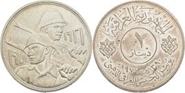 IRAQ. 1 Dinar 1971 (1390). Emissione commemorativa per il 50° anniversario dell'esercito iracheno; Ag (31 g)