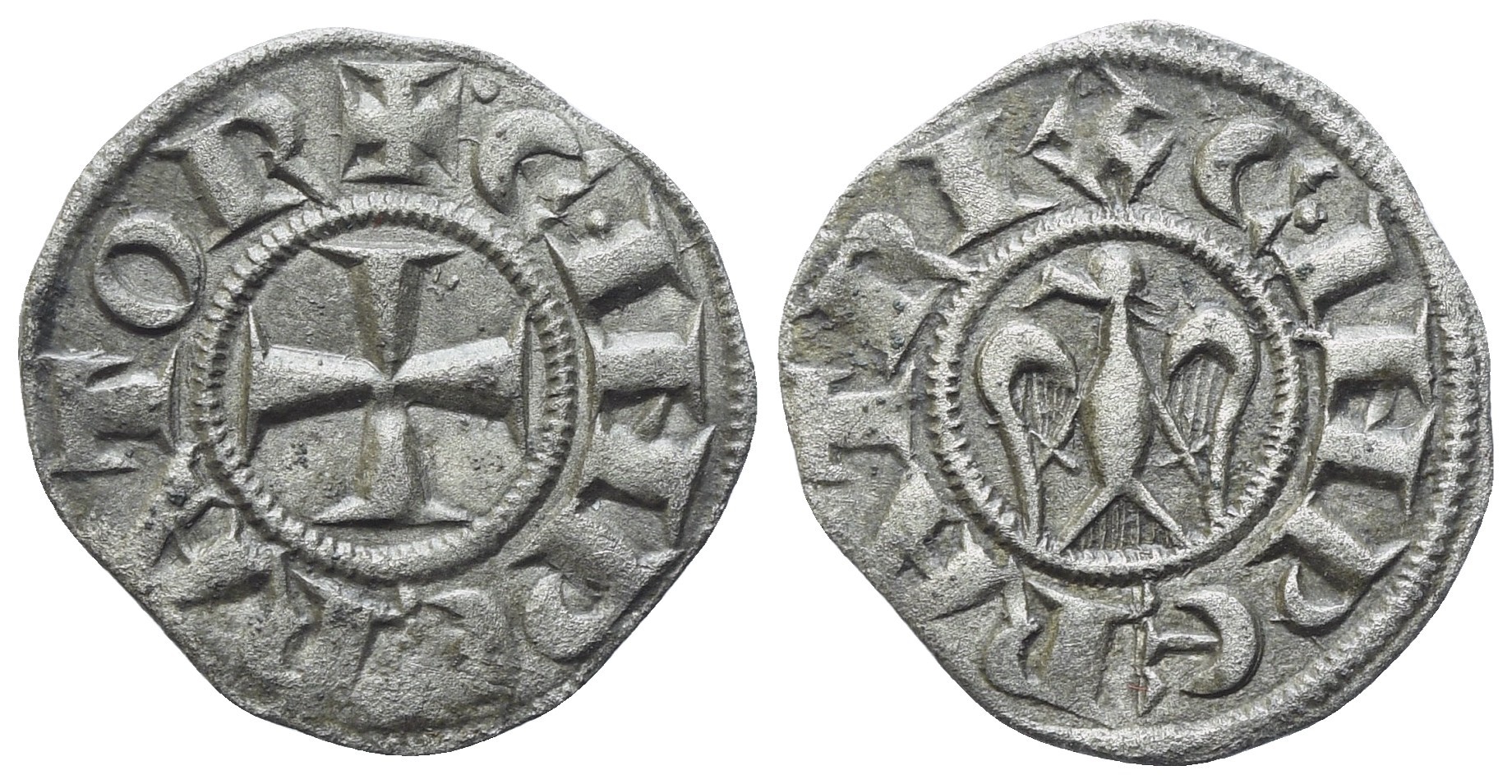 MESSINA. Enrico VI e Costanza d'Altavilla (1194-1197). Denaro; Ag (0,81 g; 15,5 mm)