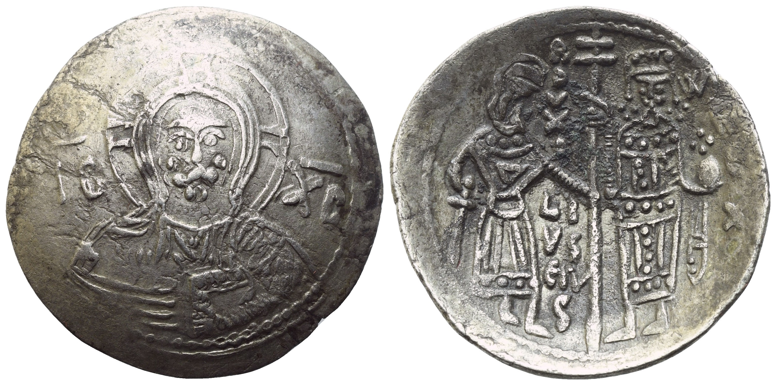 Busto frontale del Redentore con Vangelo. Rv. Guglielmo, coronato, stante con globo crucigero; accanto a lui, il figlio Ruggero che regge una lunga croce. MIR 435; Spahr 94-95. Bella patina riposata, qSPL
