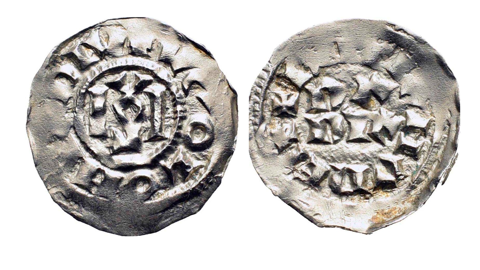 PAVIA. Ugo di Arles Re d'Italia e Lotario II (931-947). Denaro; Ag (1,66 g)