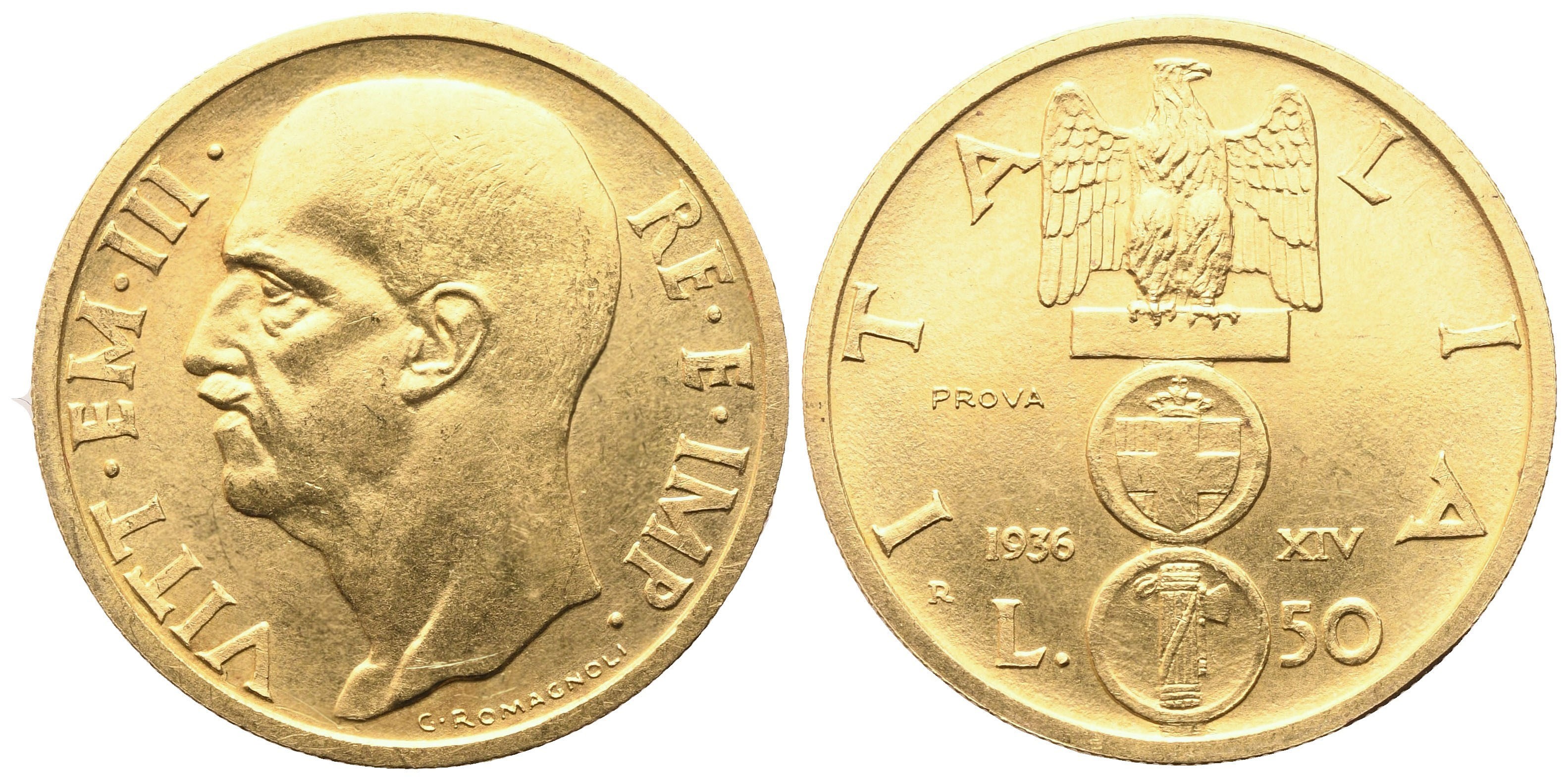 REGNO D'ITALIA. Vittorio Emanuele III (1900-1946). 50 Lire 1936 "Impero" PROVA; Au (4,41 g; 20,4 mm)