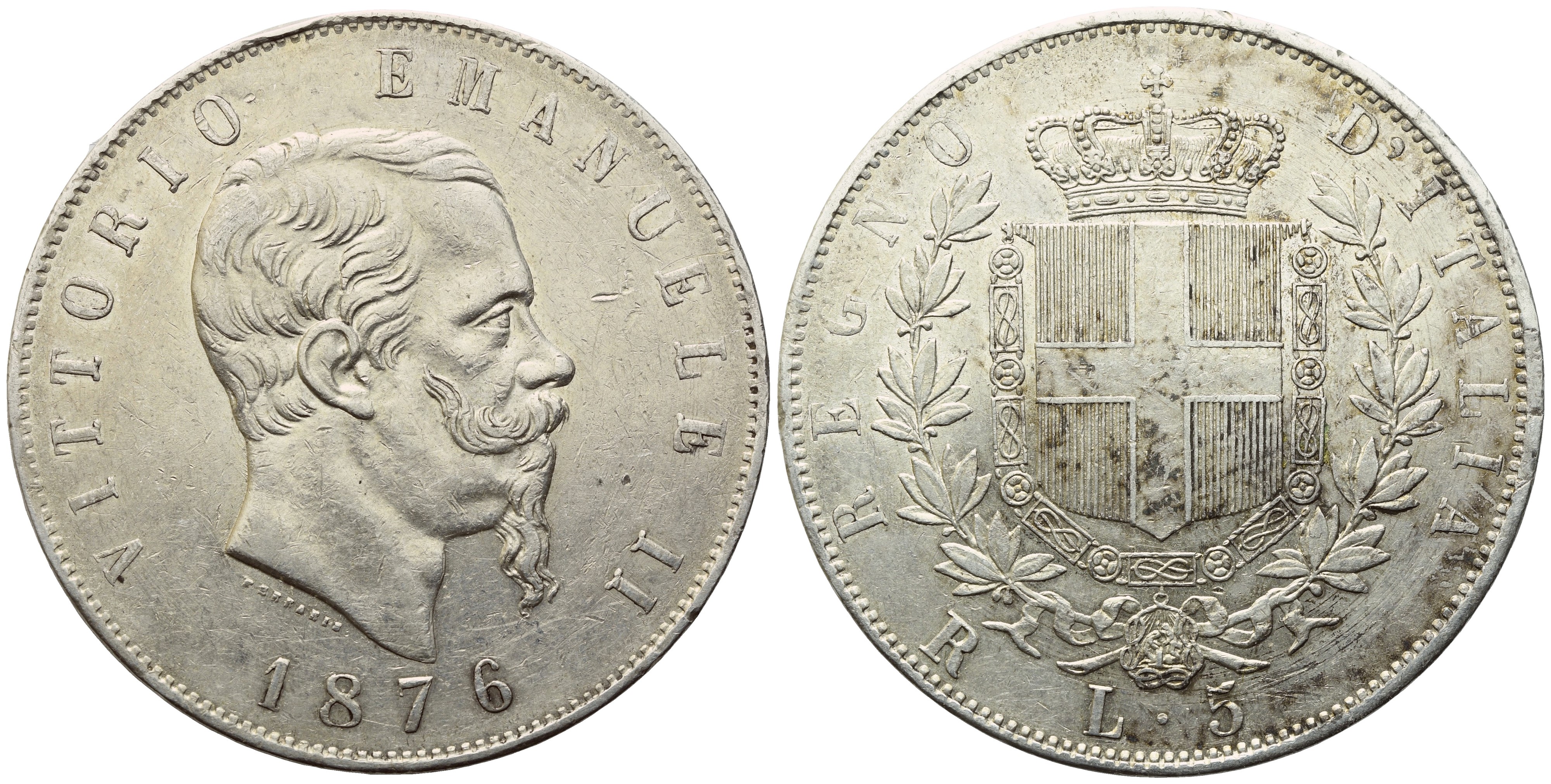 ROMA. Regno d'Italia. Vittorio Emanuele II (1861-1878). 5 Lire 1876; Ag (25,02 g; 37 mm)