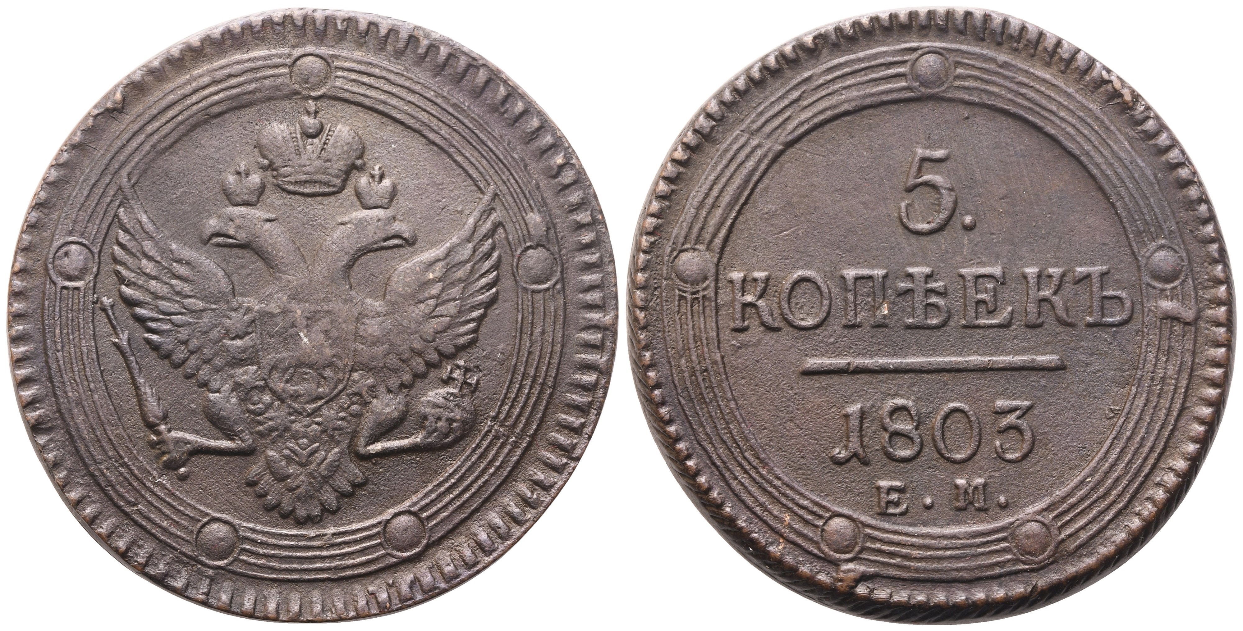 Zecca: Ekaterinburg. Aquila bicipite coronata. Rv. 5. / КОПѢЕКЪ / 1803 / Е. М.Bitkin 284; KM-C# 115.1. BB/SPL