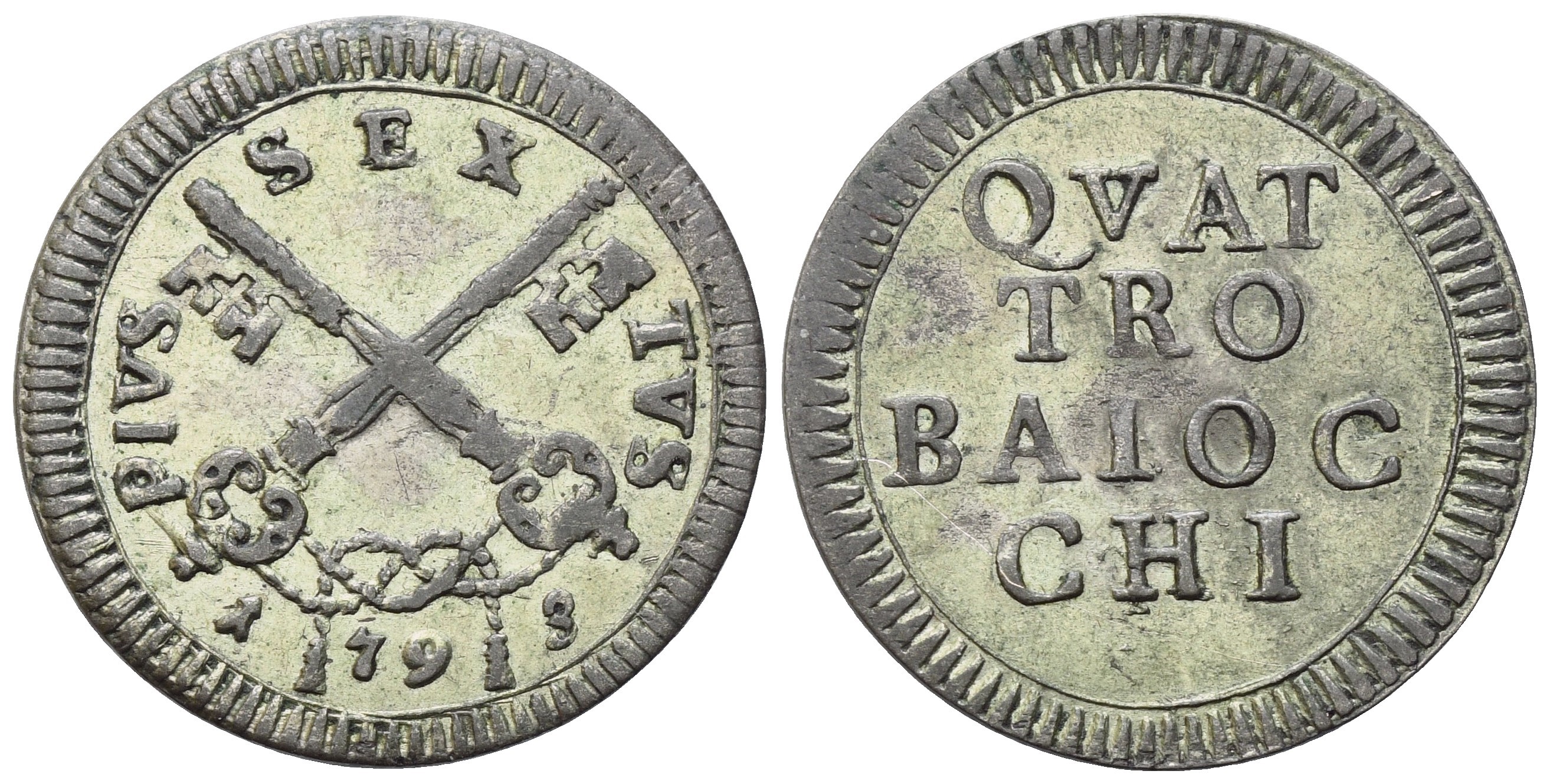 STATO PONTIFICIO. Roma. Pio VI (1775-1799). 4 Baiocchi 1793; Mi (2,52 g; 23 mm)