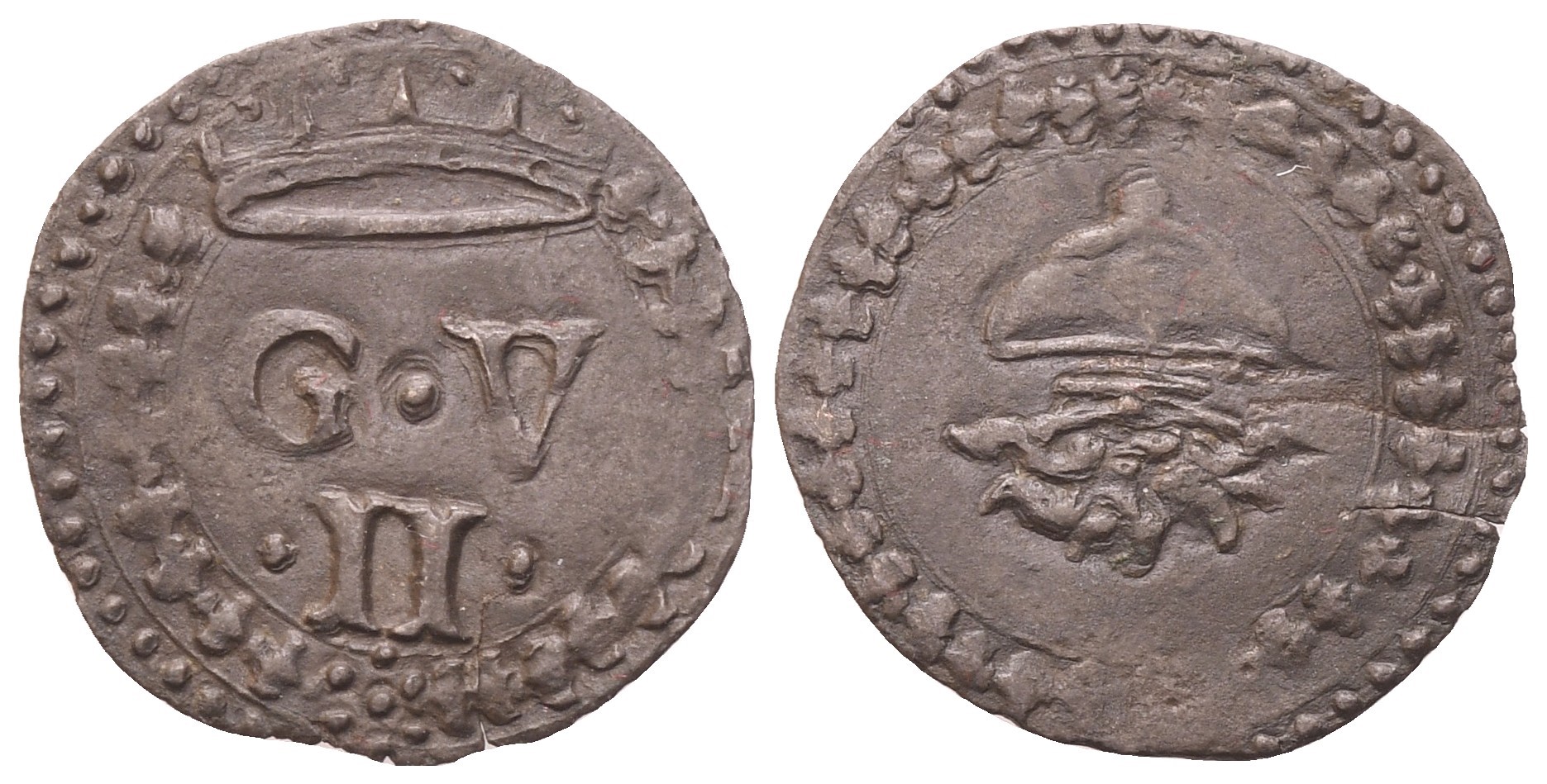 Lettere G V / II. coronate. Rv. Granata fiammeggiante. Cavicchi 132 var. BB+/qSPL
