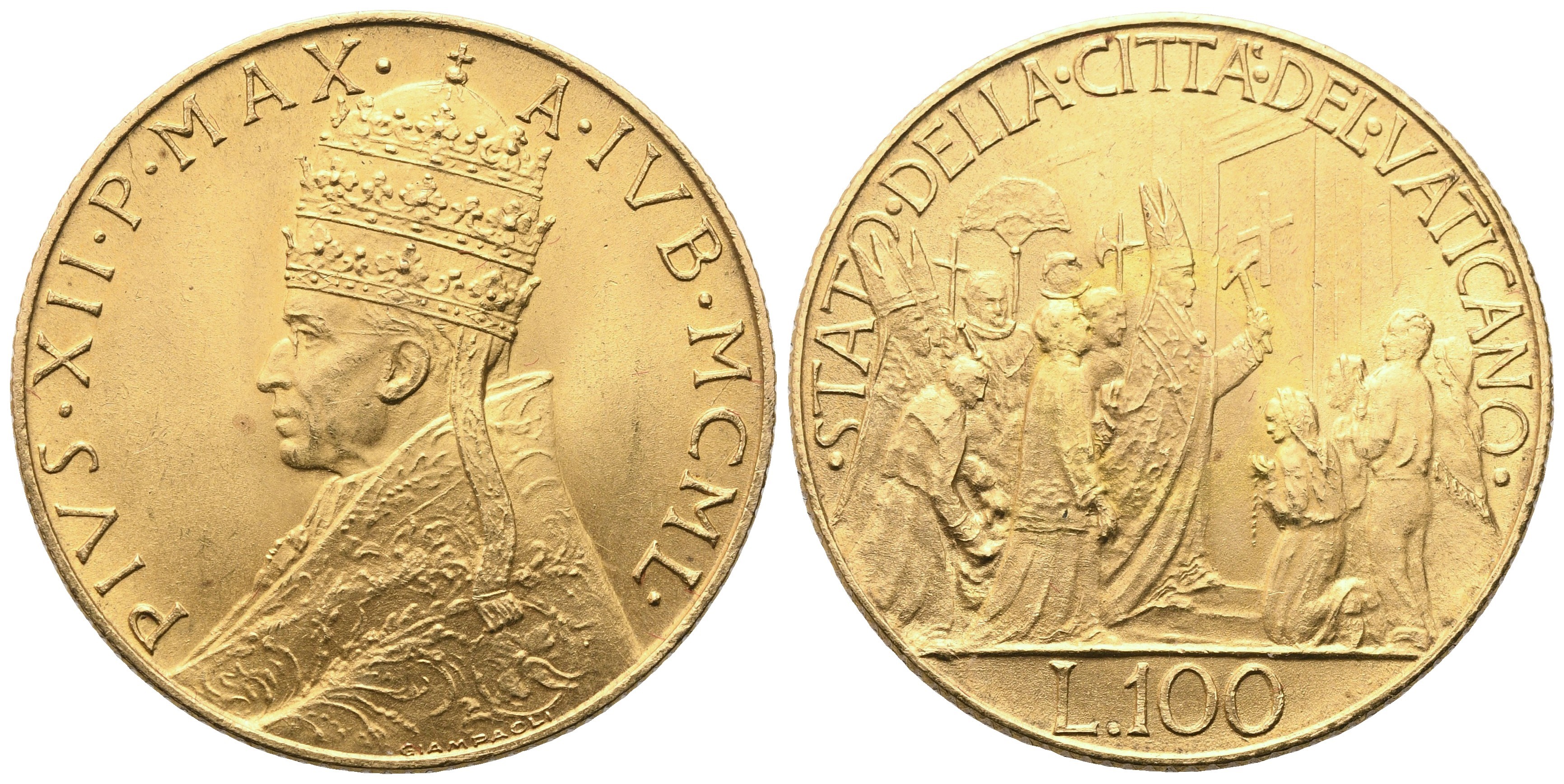 VATICANO. Pio XII (1939-1958), 100 Lire 1950 – Anno Santo; Au (5,19 g; 20,4 mm)
