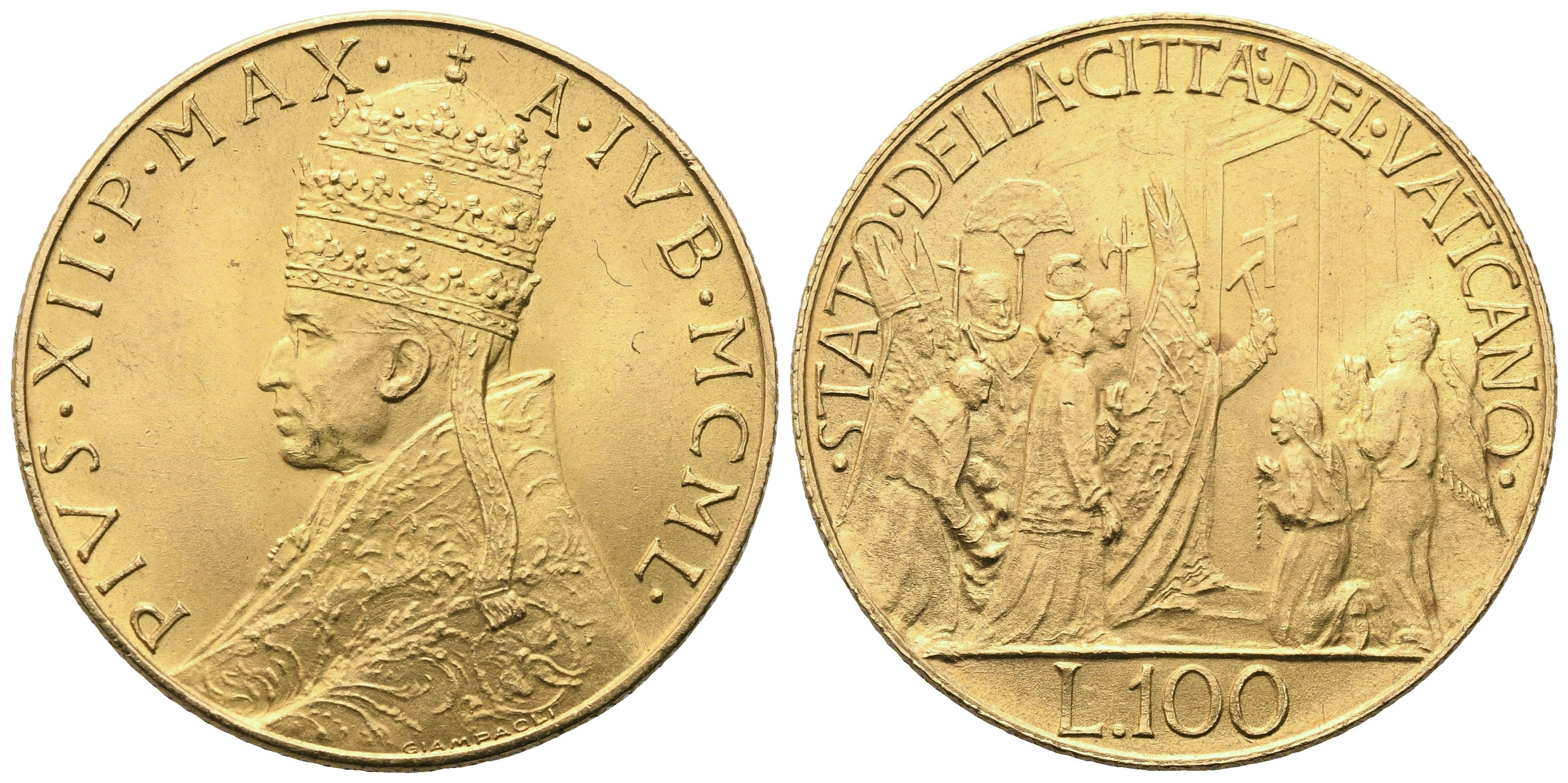 VATICANO. Pio XII (1939-1958), 100 Lire 1950 – Anno Santo; Au (5,19 g; 20,5 mm)