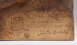 Firma e data incise sul lato sinistro: C. Barbella, Roma, 1902. Firmato al retro con dedica
