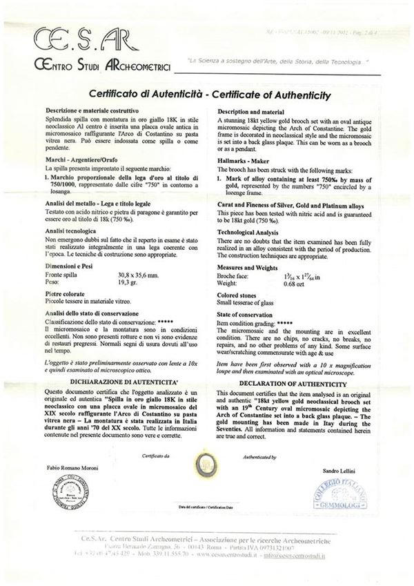 Spilla italiana in oro con micromosaico - XIX secolo...