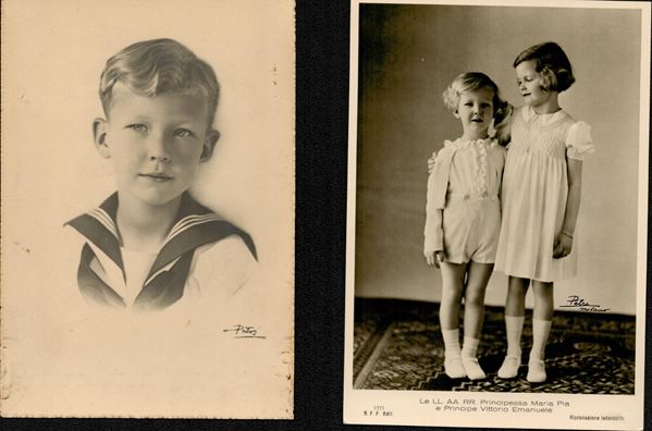 Lotto di 4 foto e 2 cartoline con ritratti dei membri di famiglia Savoia, alcun...