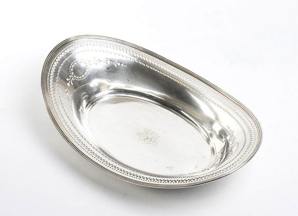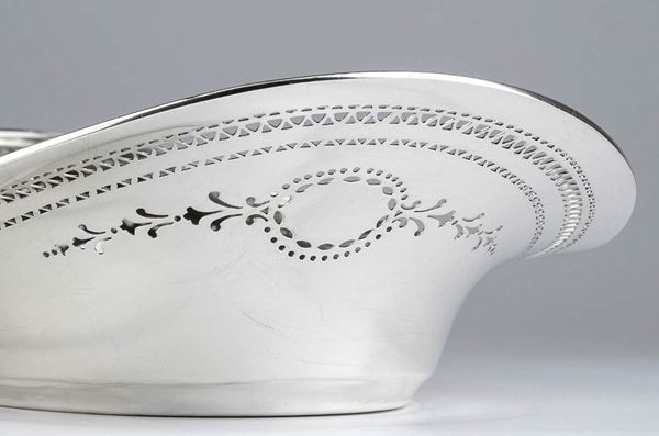 of oval shape, the brim openworked with geometric decorations. Sterling silver, hallmarked Tiffany & Co, 1907-1947 (directorship of John C. Moore II).