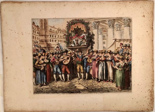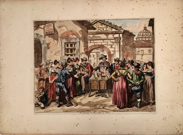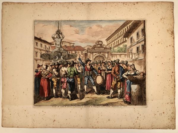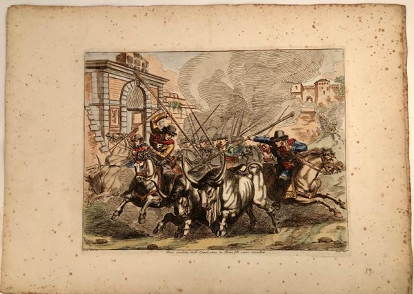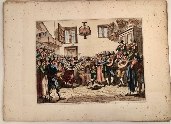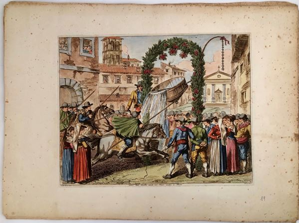 Lot of 19 plates from the series Il Meo Patacca o vero Roma in feste nei trionfi di Vienna, engraved between 1820'1821 and published in Rome in 1823.