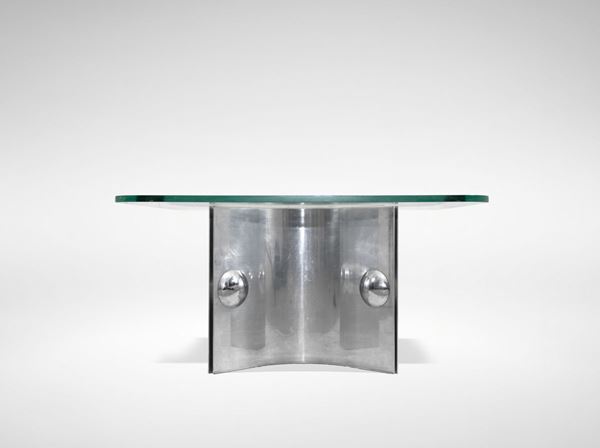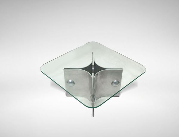 Coffee table in chrome-plated steel and glass made by Rosselli for Saporiti in the 1970s. Good condition.