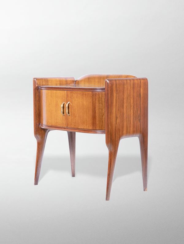 Elegant pair of wooden bedside tables with decorative top made by Vittorio Dassi in the 1970s.