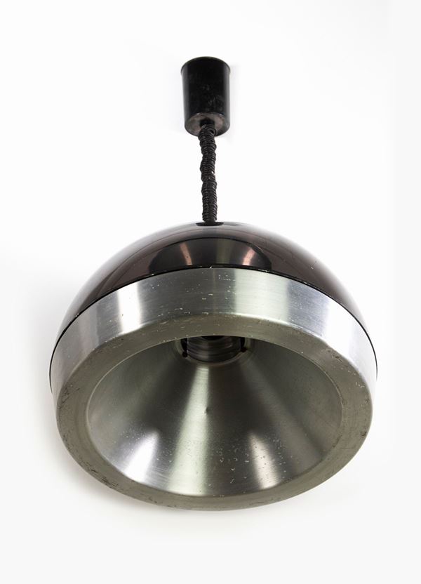Vintage chandelier realized in fumรฉ plexiglass and aluminum.