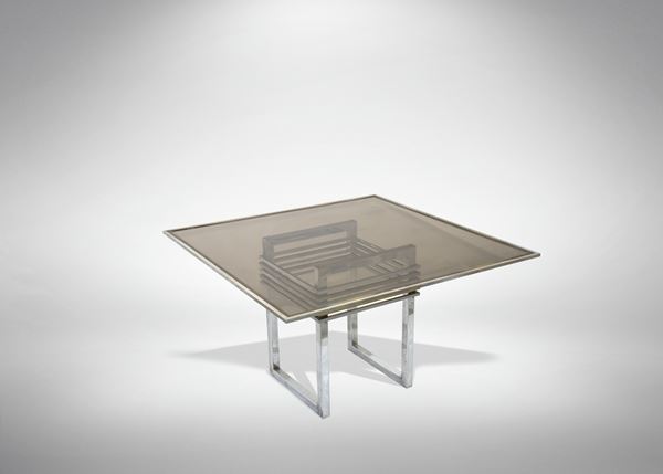 Chromed brass table made to an original design by Romeo Rega for Metalarte in 1970.