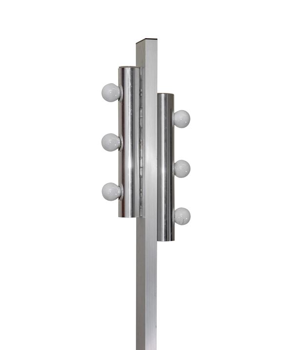 A unique chromed floor lamp with marble base and six lamps. Realized by Targetti