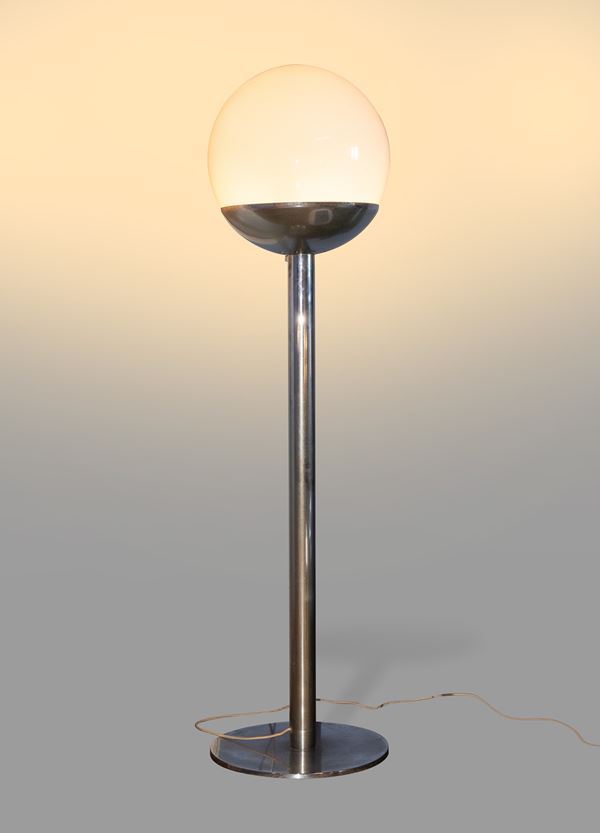 Vintage floor lamp realized in chromed steel and glass by Pia Guidotti.