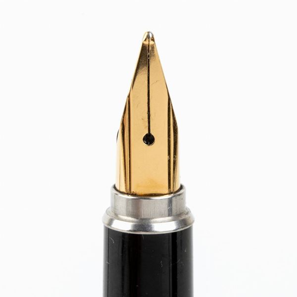 black cap and barrel with gold accents. Cartridge filling system.