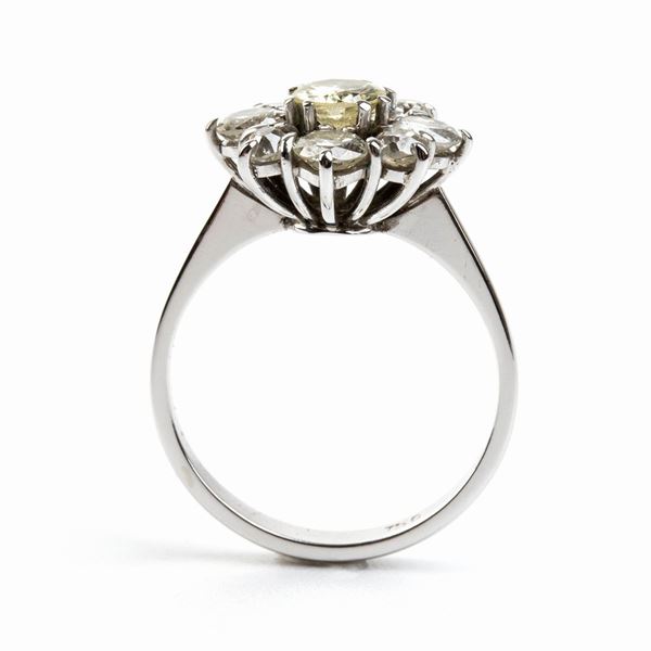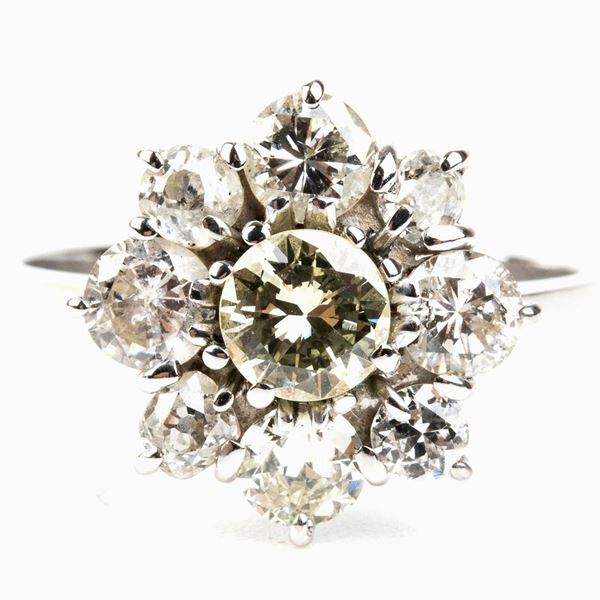 N. 01 round shape brilliant cut diamond approx. 0.50 ct, K-L, VVS. N. 06 round shape brilliant cut and n. 02 old mine cut diamonds approx. 2.20 ct tot, G-H, VS-SI.