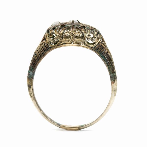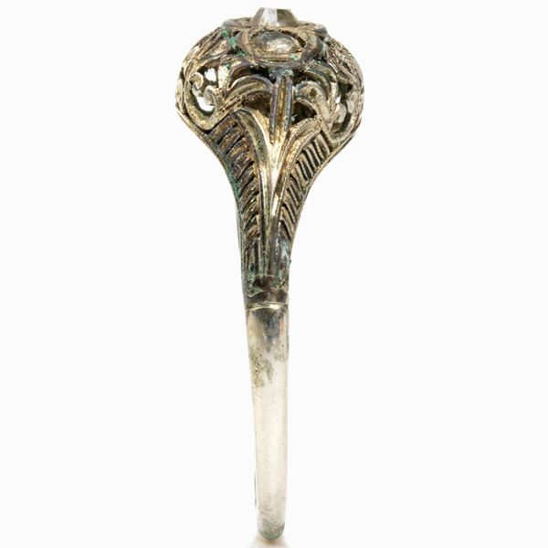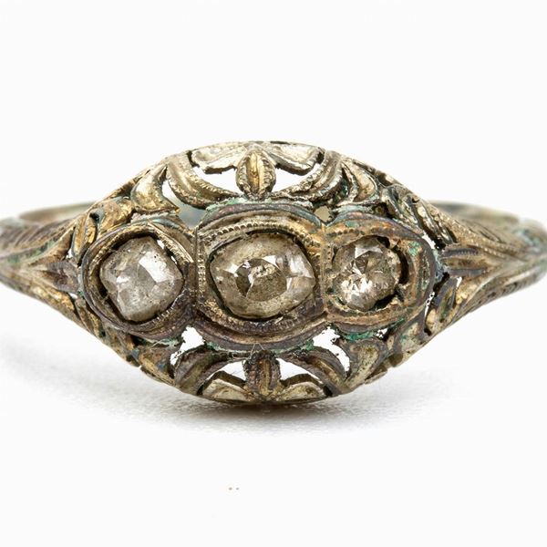 openwork with plant motifs, set with 3 rose-cut diamonds.