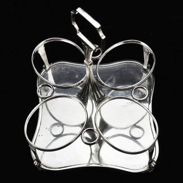 English Georgian Empire sterling silver four bottle decander stand - London 1806, mark of NAPTHALI HART