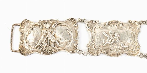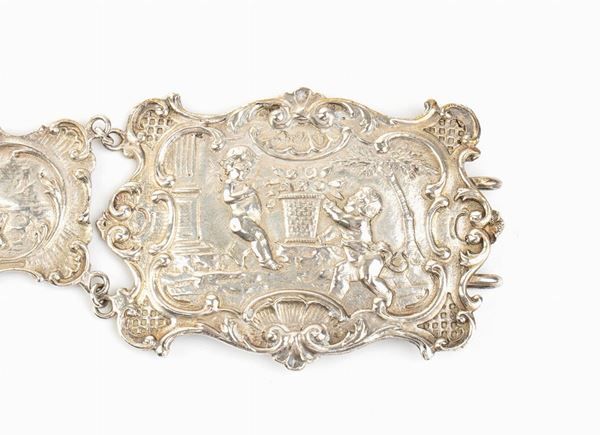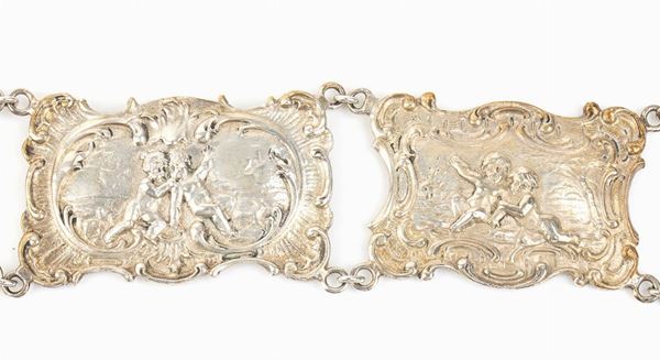 consisting of 11 cast and chased silver plaques depicting jubilant putti. Hallmarked with unidentified marks, probably from the German area.